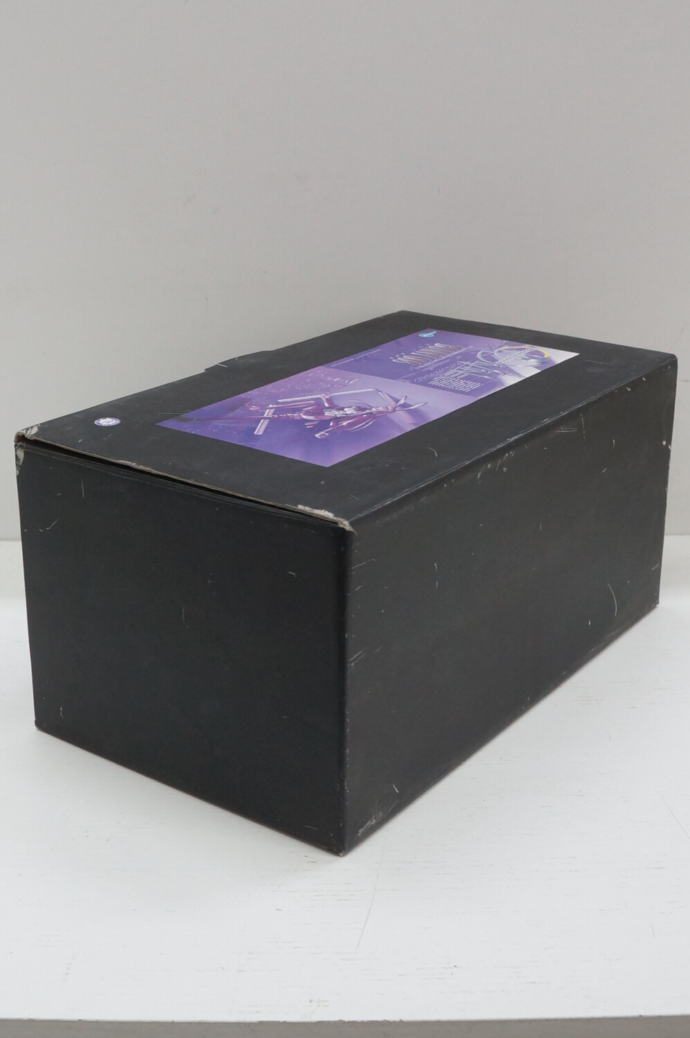 | Oggetto COMPLETO di tutti i componenti, la figura ha qualche piccolo punto di sverniciatura. E’ incluso tutto come da foto. Nella scatola manca la parte superiore dell’imballo in polistirolo. La scatola ha un po’ di usura ai bordi ed ha un’ammaccatura in un angolo. |