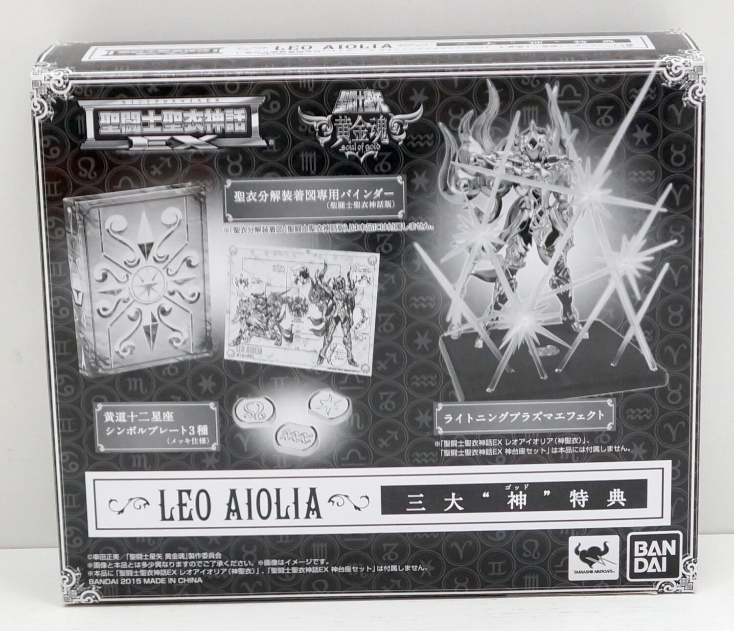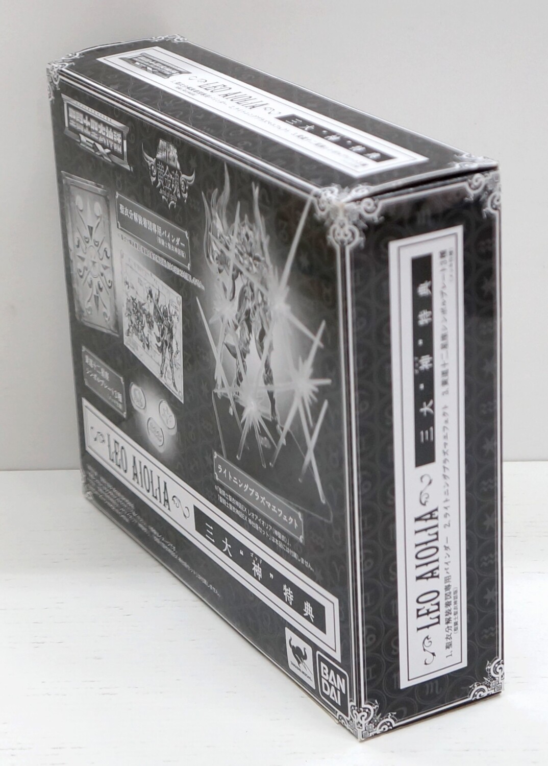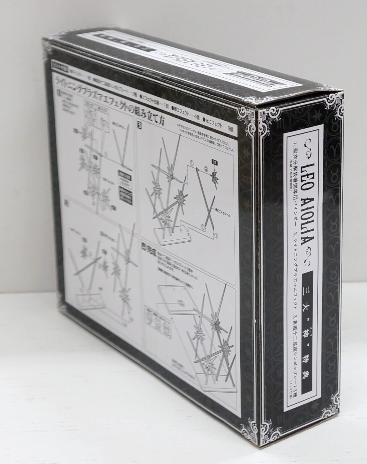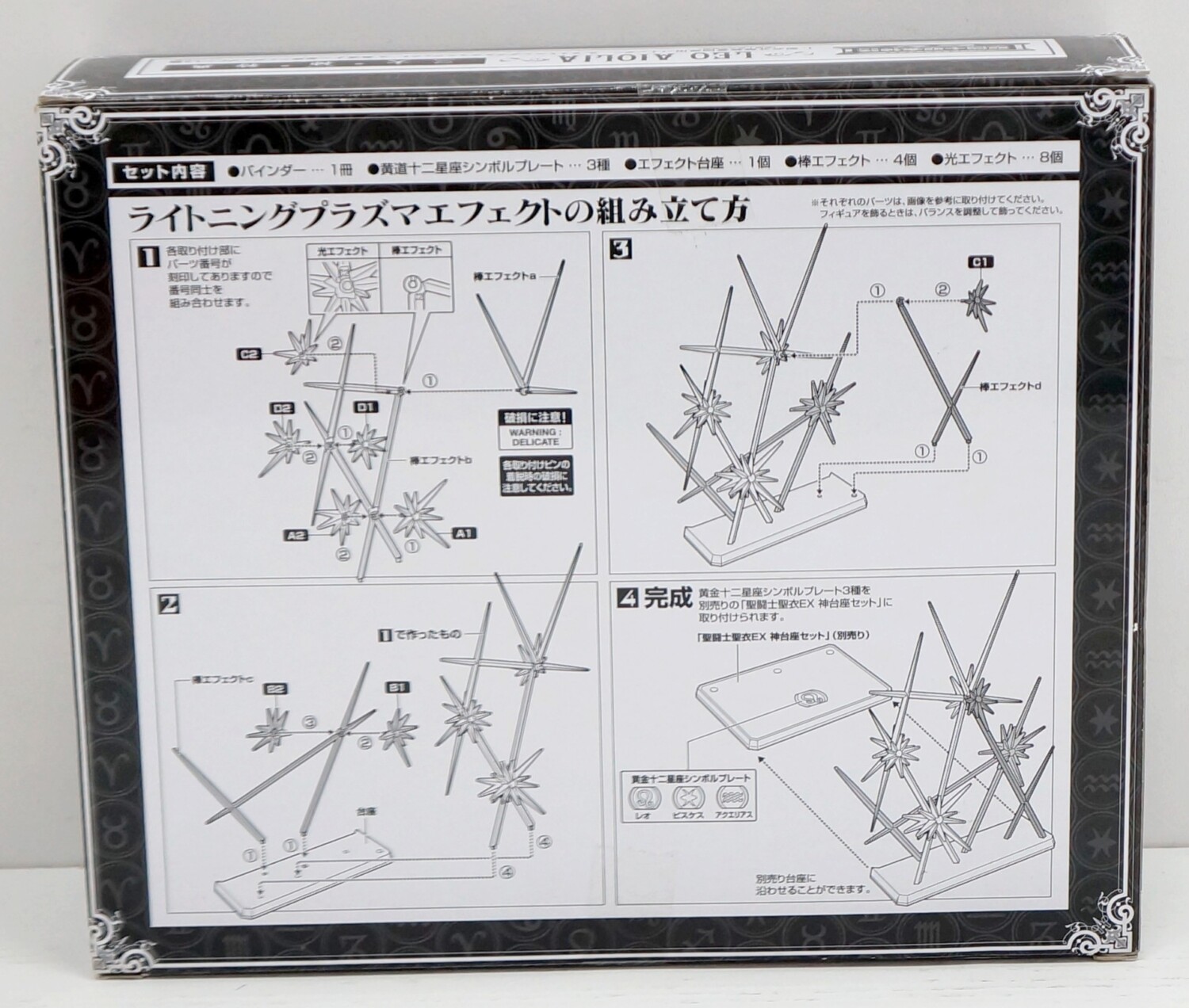 NOTA BENE: Action Figure di Leo Aiolia NON INCLUSA! Sono inclusi solo i seguenti: 1 basamento, gli effetti dell’attacco finale di Leo, e i simboli che rappresentano 3 cavalieri d’oro da poter intercambiare. |
