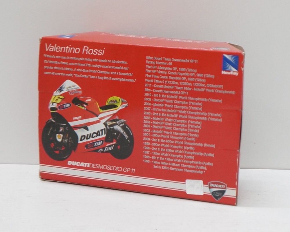 | Titolo: | Ducati Desmosedici Rossi 46″ Gp11, Scala 1:12, Die Cast Action Figure Newray |