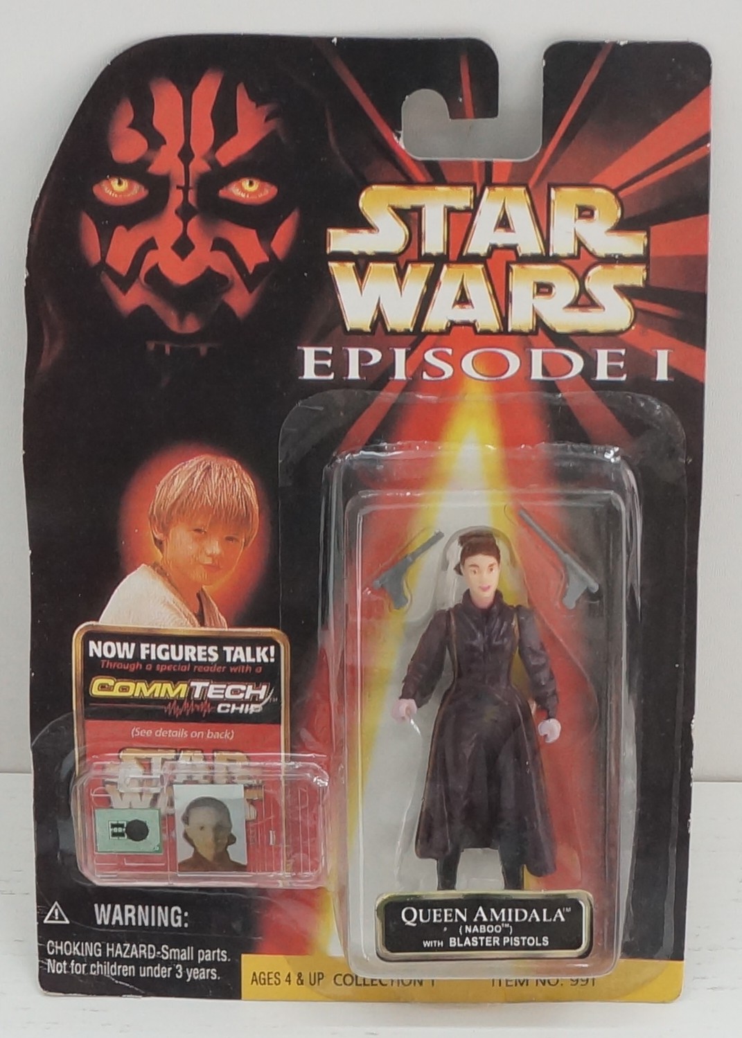 CommTech Chip: Queen Amidala (Naboo) with Blaster Pistols. Star Wars Episode I. Action Figure cm 9. CommTech