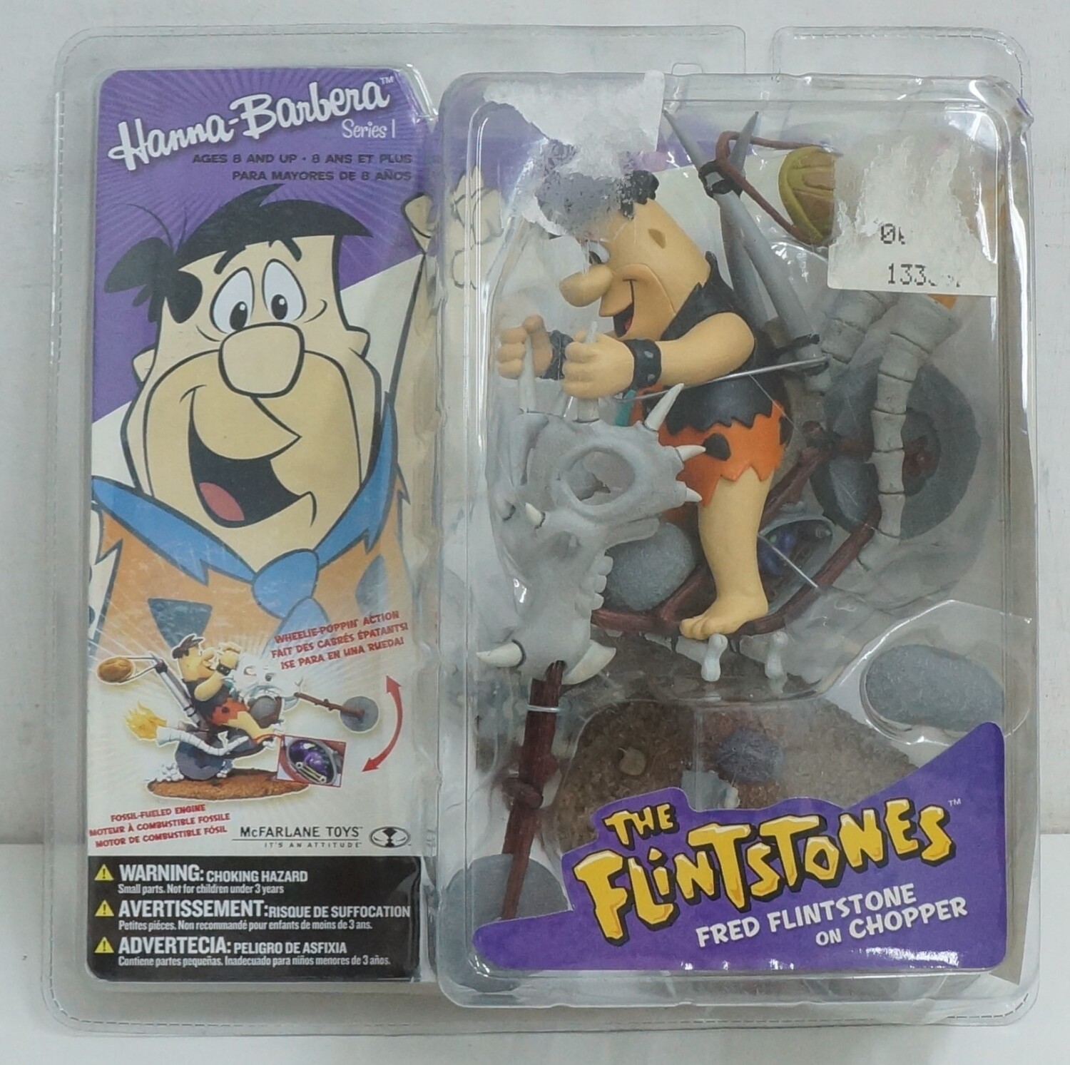 | Titolo: | The Flintstones. Fred Flinstones on Chopper (con moto). Action figure 16 cm. McFarlane |