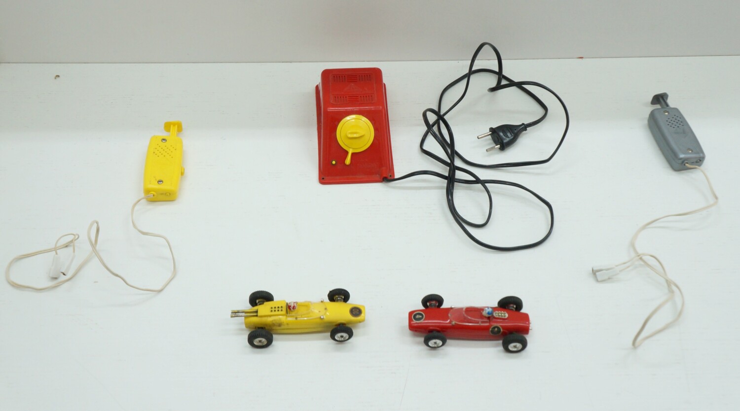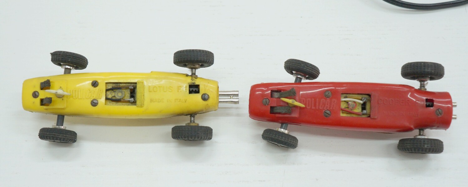 Le macchinine incluse sono la Lotur F.1 gialla e la Cooper F.1 rossa e presentano un pò di sporco in alcuni punti. La scatola ha uno strappo su un lato e presenta un pò di usura ai bordi. |