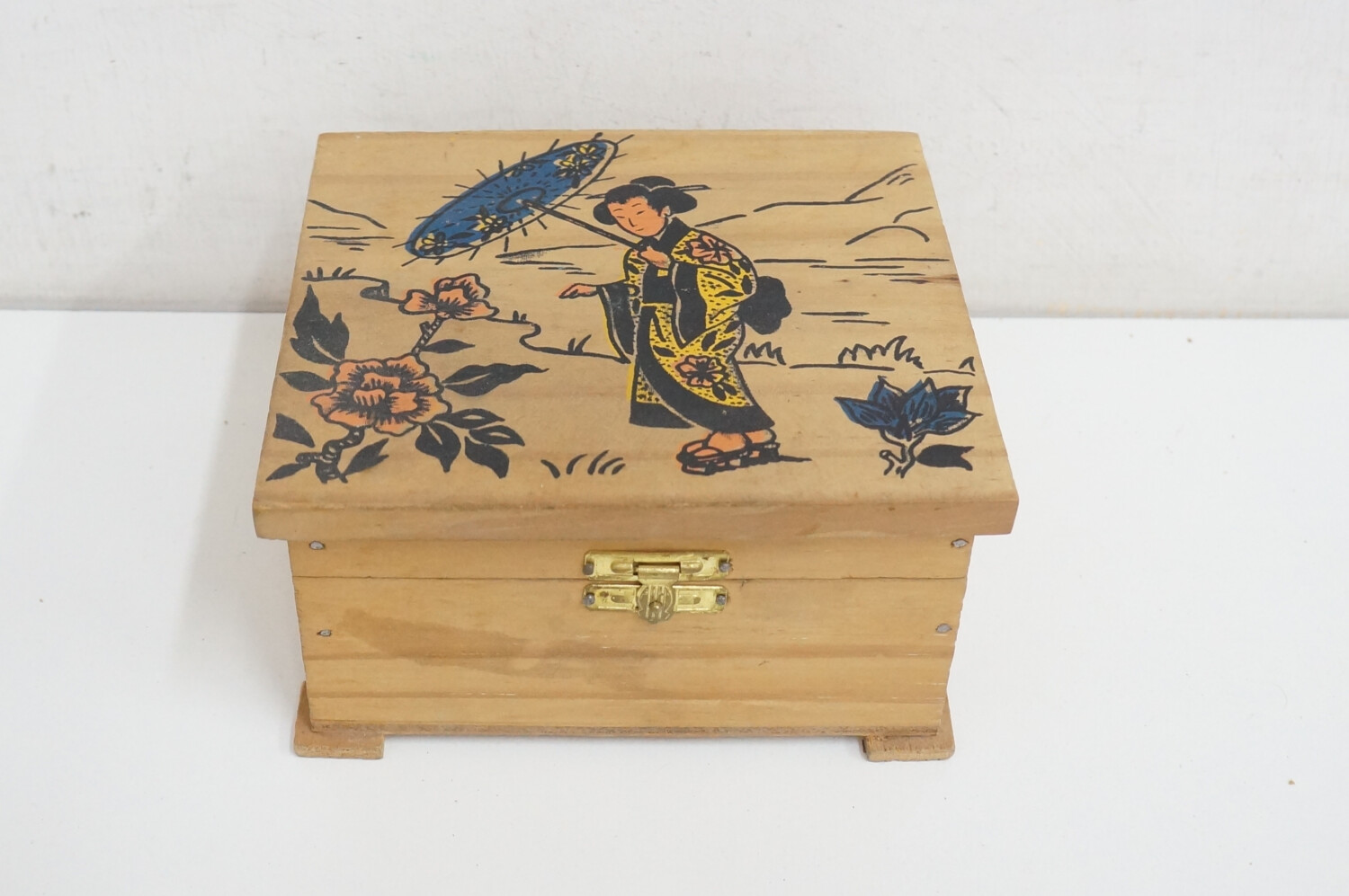 Scatola di Legno con decorazioni Giapponesi – Lembranca de Pacos de Caldos – Vintage