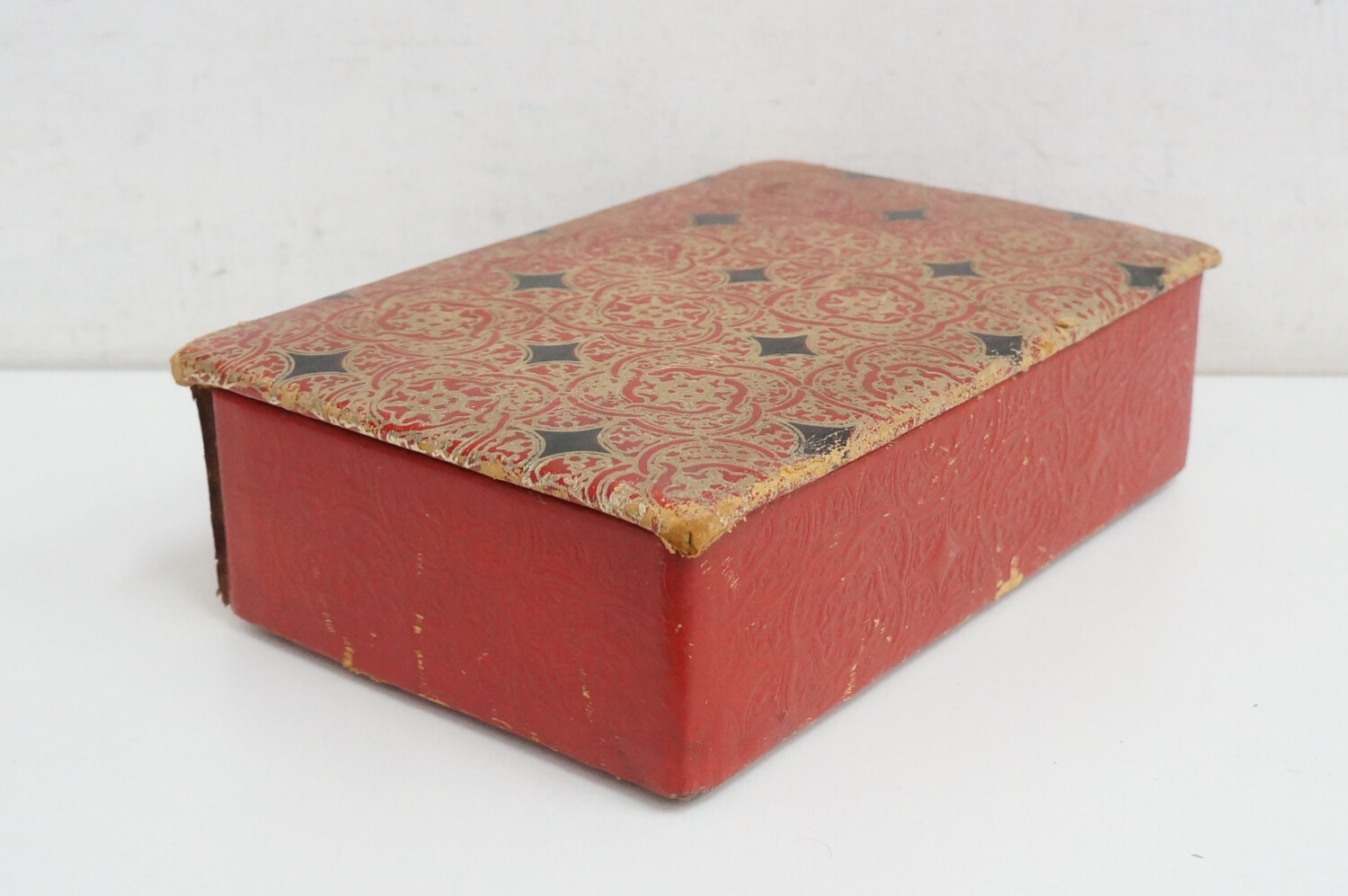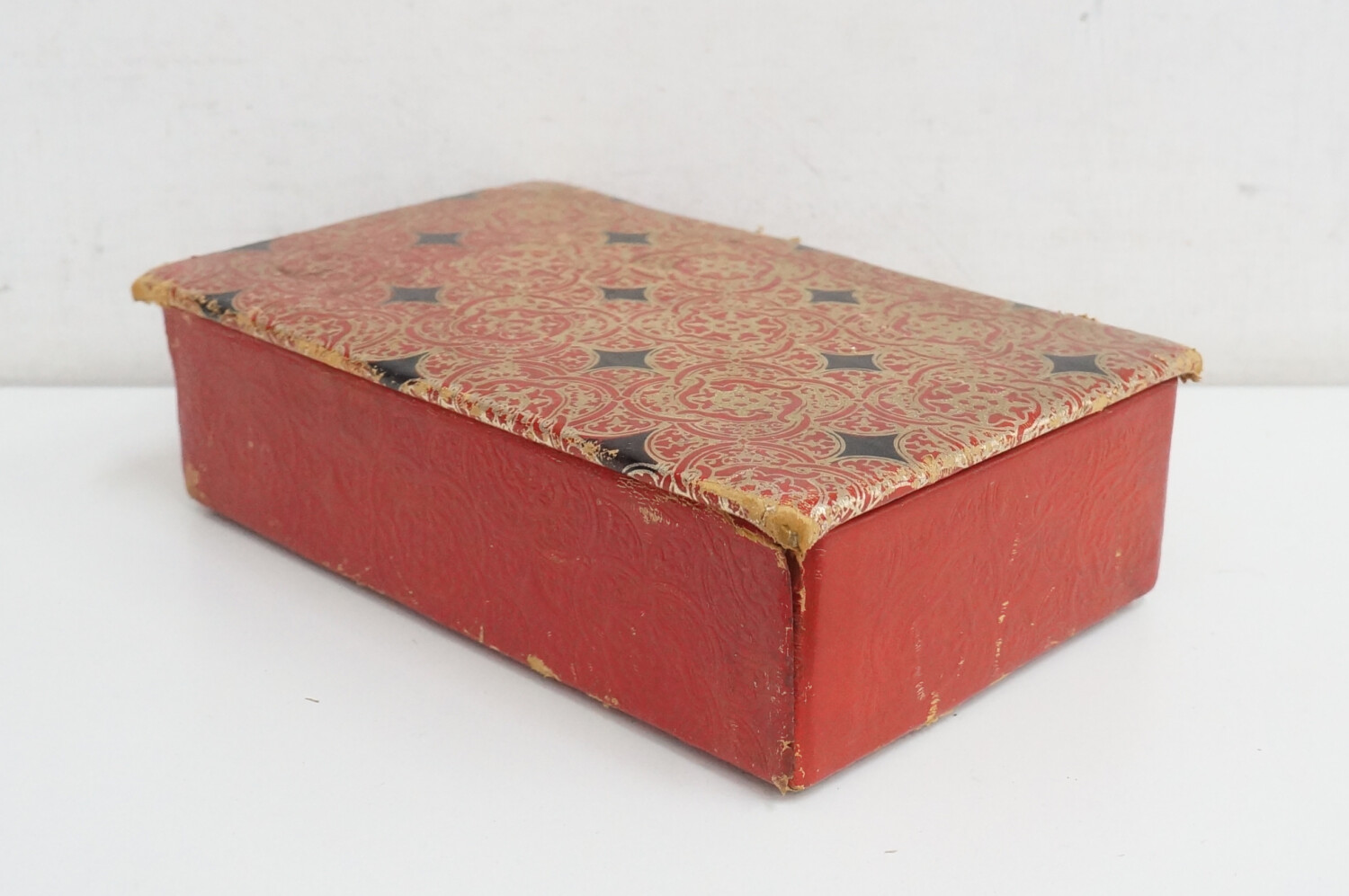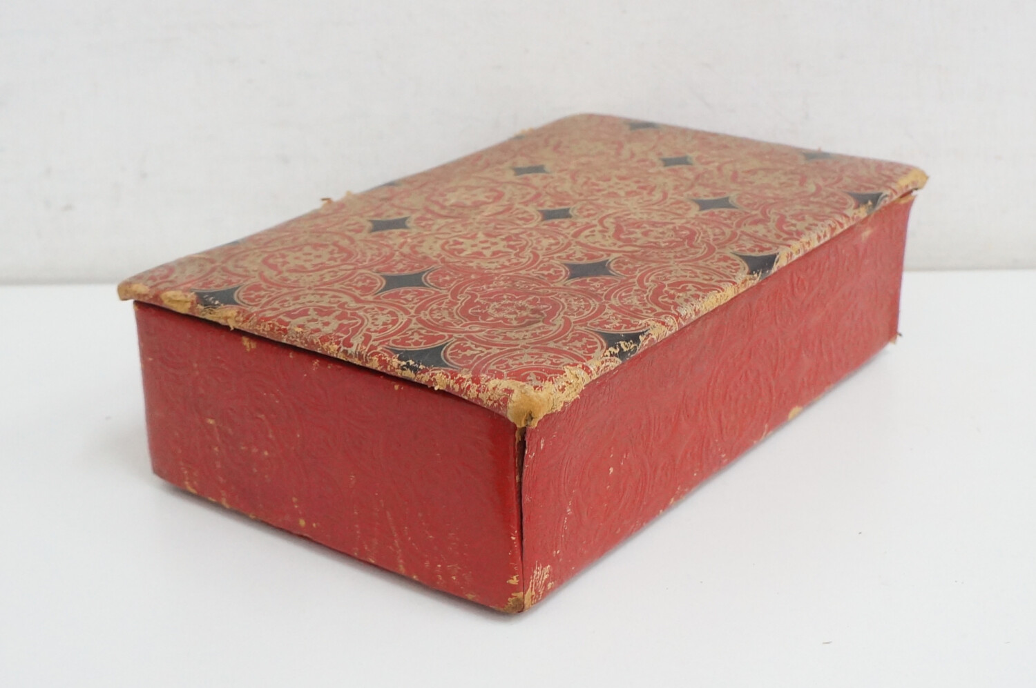 | La scatola presenta qualche segni di sverniciatura, il coperchio è usurato ai bordi. La parte interna è un po’ scollata. |