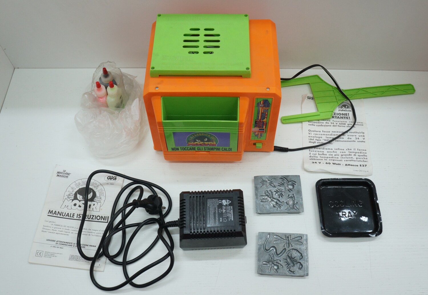 | NOTA BENE!!! Prodotto NON COMPLETO. Sono presenti due soli stampini. Testato e funzionante. Sono presenti 3 boccette con il liquido per creare i mostri, il liquido è presente e utilizzabile. Manuale mancante. Scatola con strappi e scotch. E’ incluso tutto come da foto. |