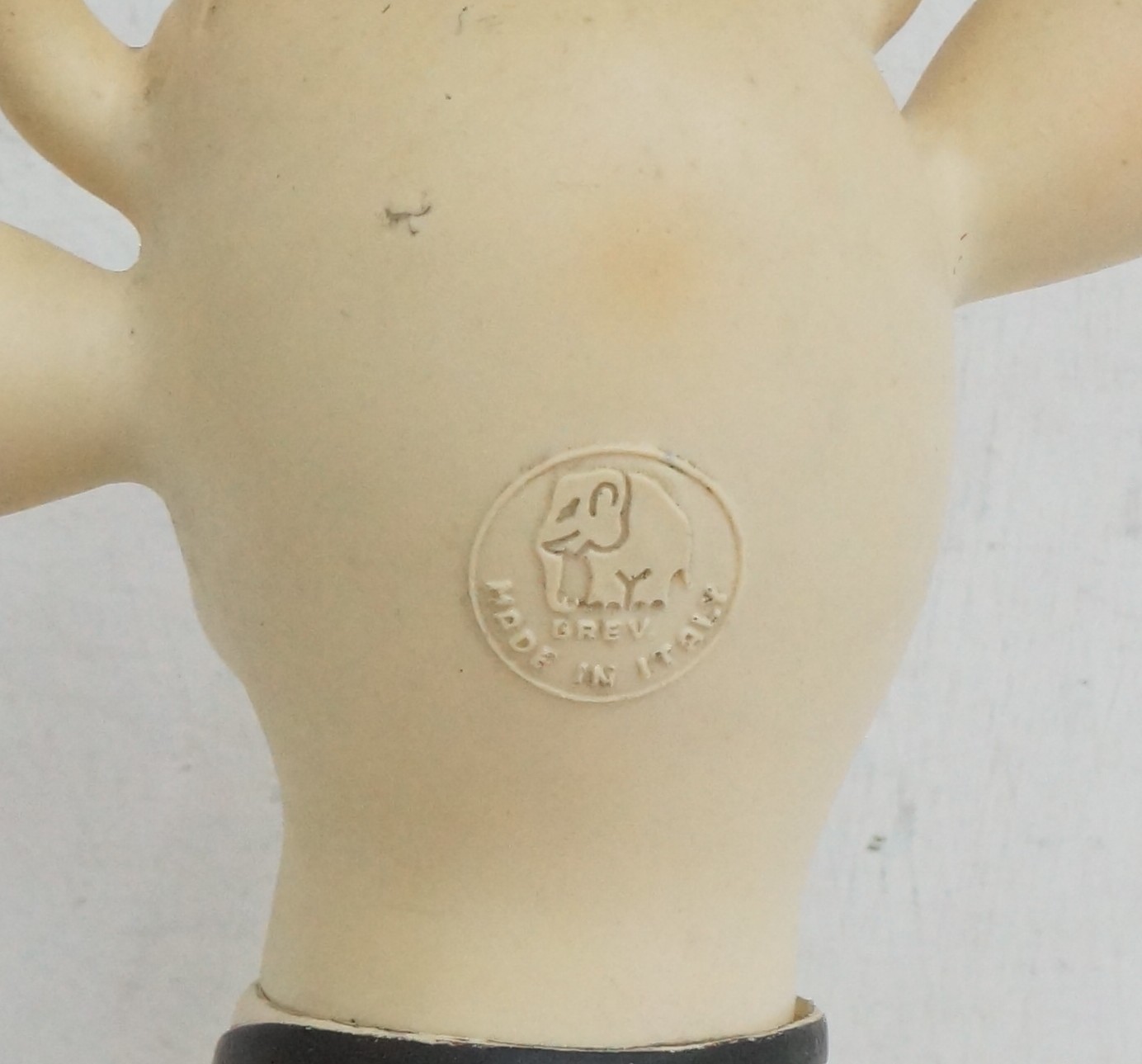 Il pupazzo è un po' scolorito in alcuni punti ed ha alcune piccole crepe sul dorso, in alcuni punti è leggermente s porco. Il pupazzo è dotato di fischietto NON FUNZIONANTE.