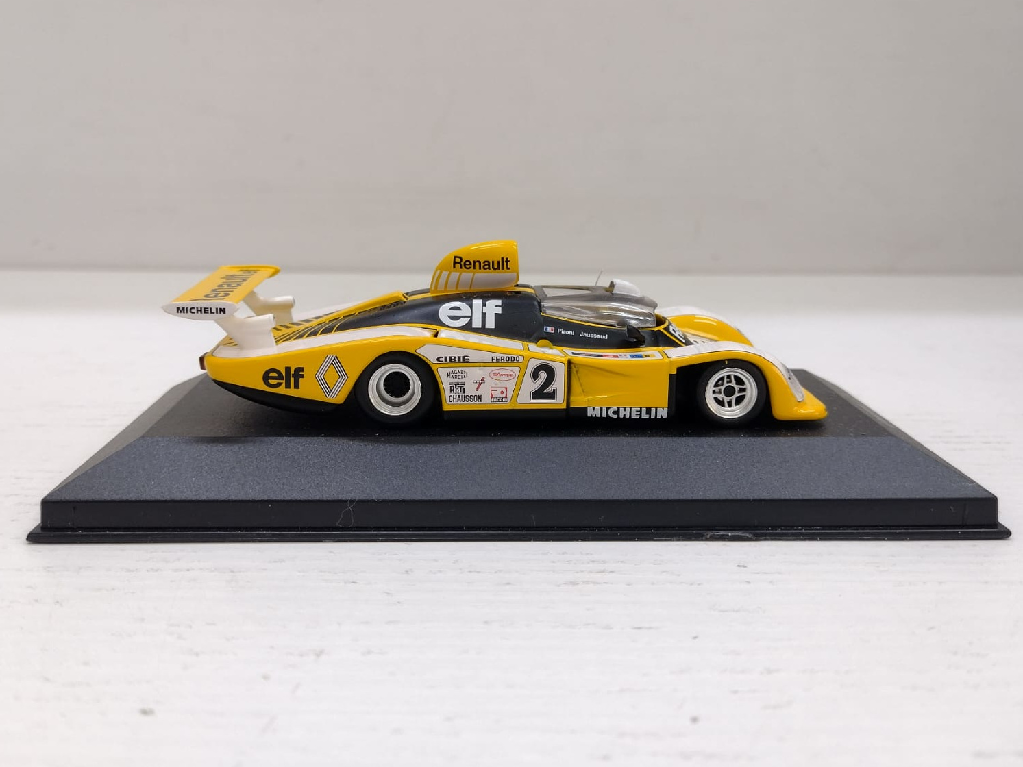 | Condizioni eccellenti. Completo di basetta originale, senza teca e box in cartoncino come da immagini. Modellino giallo bianco. |