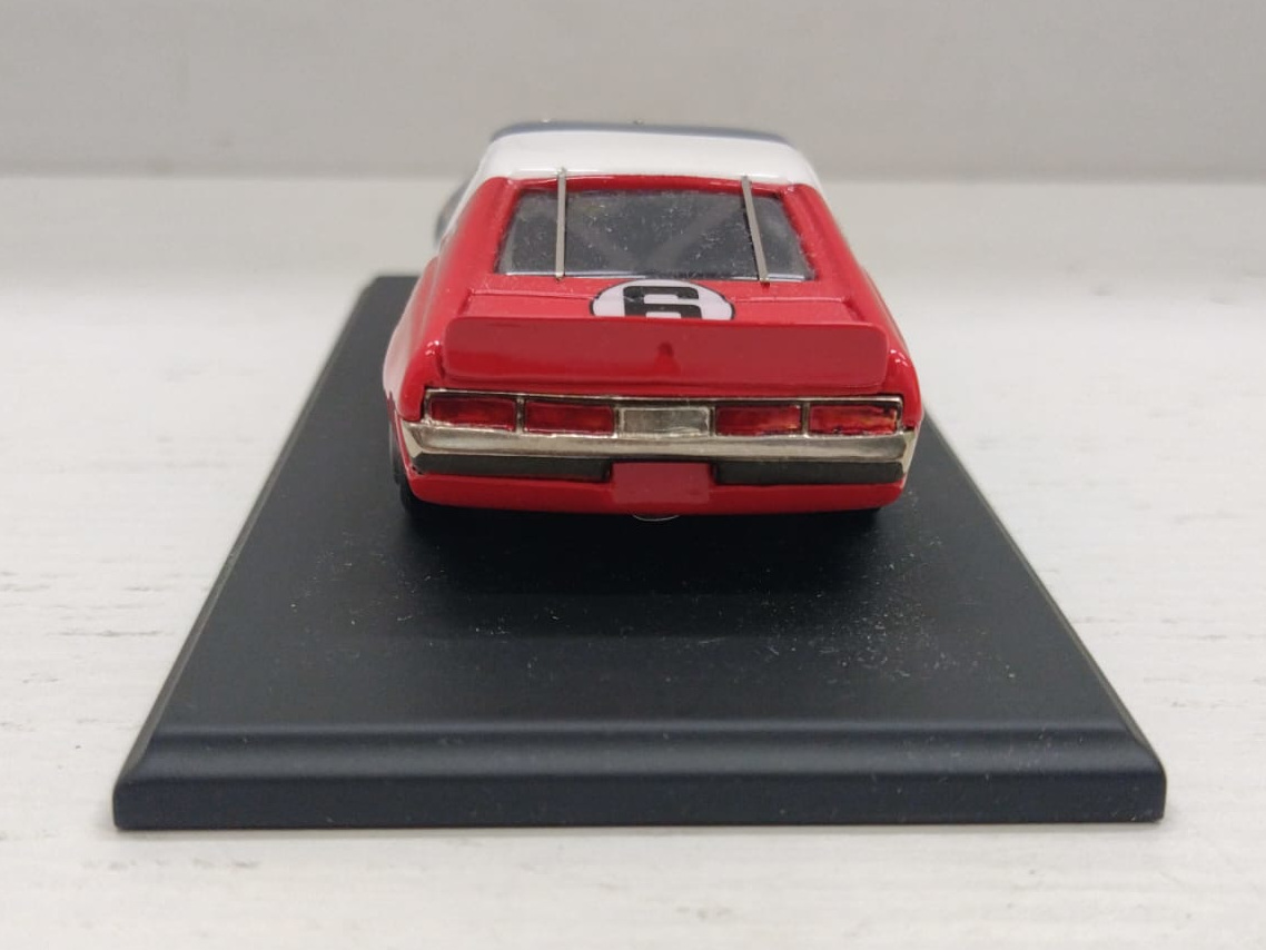 Condizioni ottime. NOTA BENE: Kit e Decals sono montati molto bene, l'unico difetto è che la cornice cromata del parabrezza anteriore in un angolo, per un piccolo tratto è quasi staccata ma comunque presente, probabilmente è riparabile. Montaggio professionale non verificato se factory o da kit. Completo di basetta originale, senza teca e box in cartoncino come da immagini. Blu Bianco Rosso.