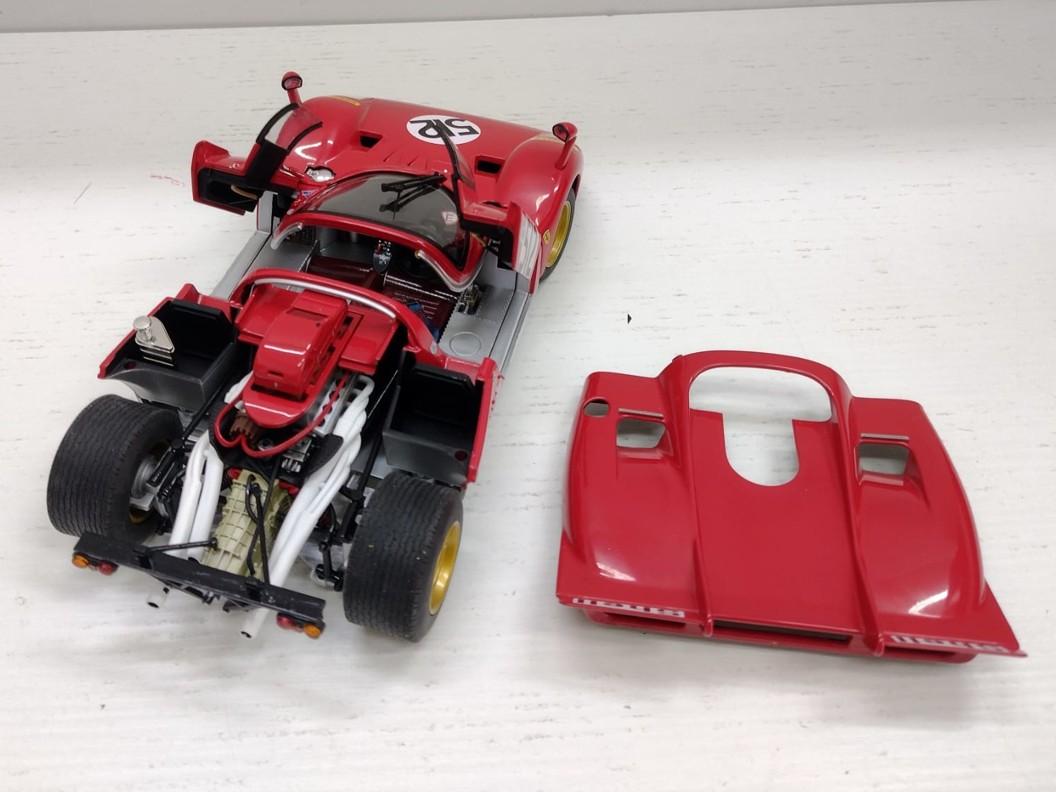 | Condizioni ottime. Completo di basetta e box in cartoncino. Piccola sverniciature dietro il roll-bar. Mancano le viti per fissare il modellino alla basetta. Il box in cartoncino internamente ha delle macchioline (fioriture) e sulla parte esterna in plastica ha un piccolo residuo di colla. Ruote sterzanti. Edizione Limitata 5000 pezzi. |