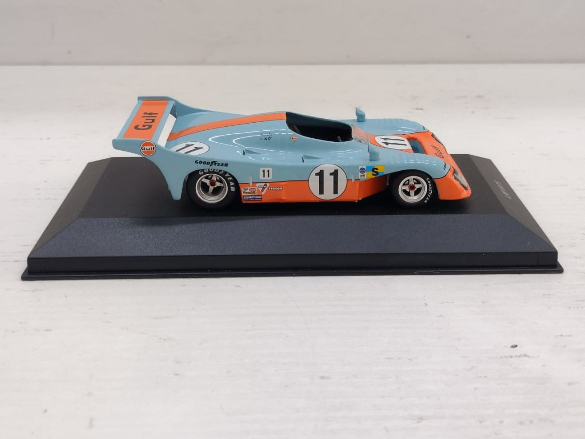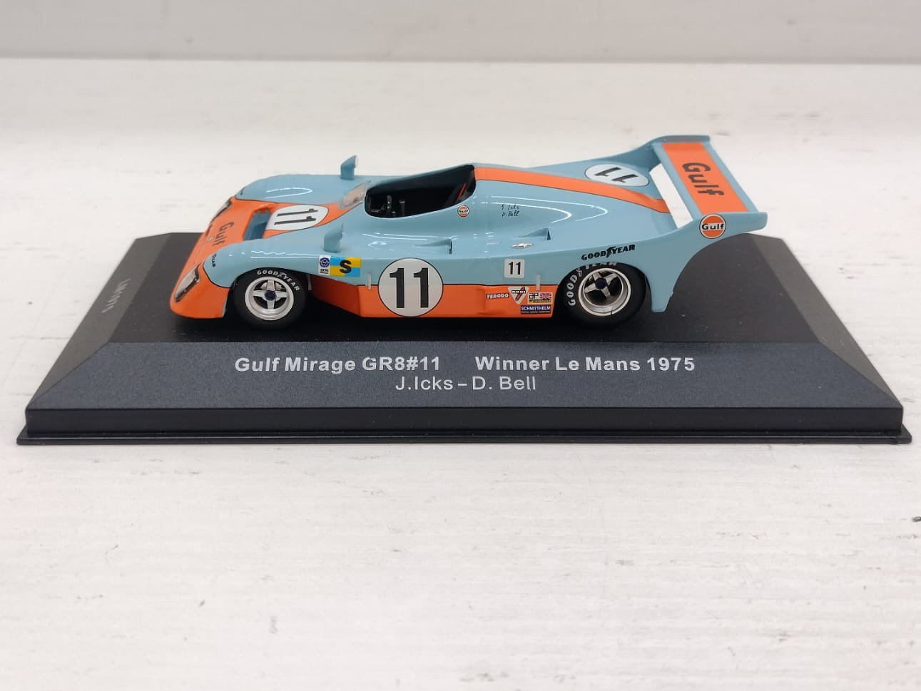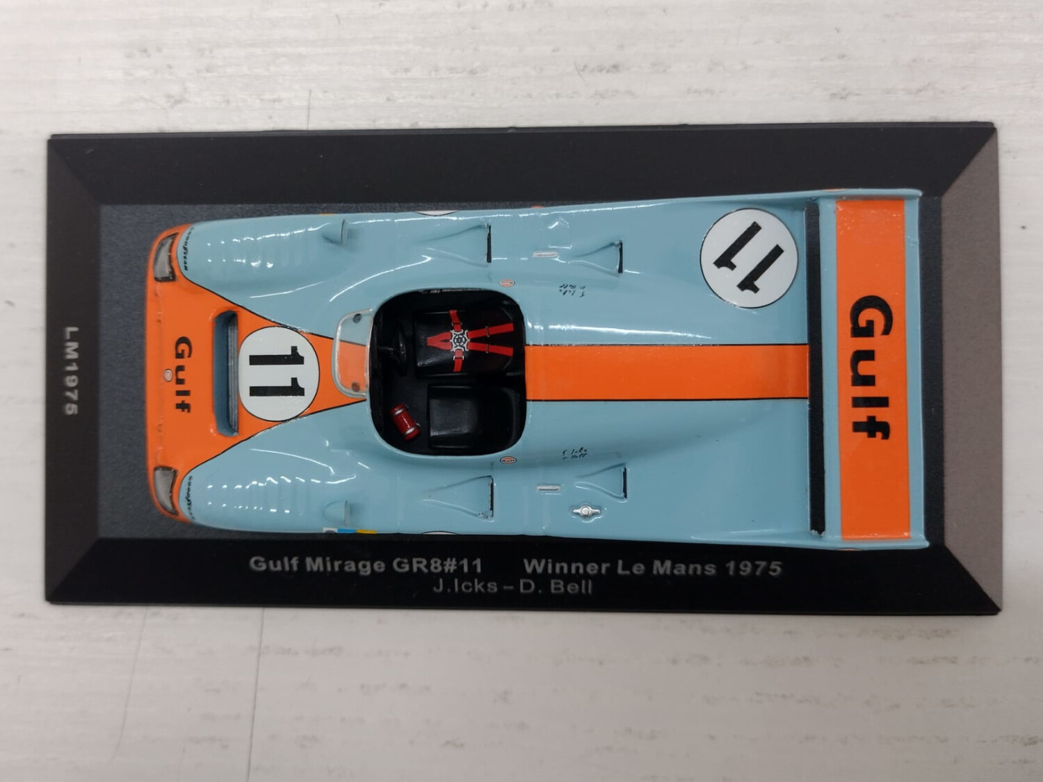 | Titolo: | Gulf Mirage GR8 IXO LM1975 24h Le Mans 1975 1:43 #11 Icks/Bell Modellino Model car Azzurro Arancione |