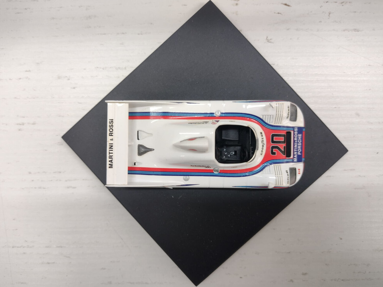 | Condizioni buone. Adesivi con qualche piccolo pezzettino mancante. Completo di basetta originale, senza teca e box in cartoncino come da immagini. Bianco rosso |