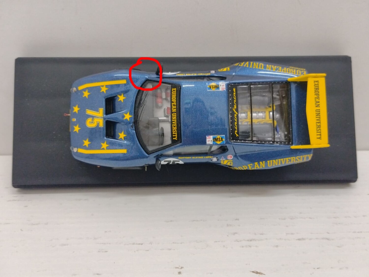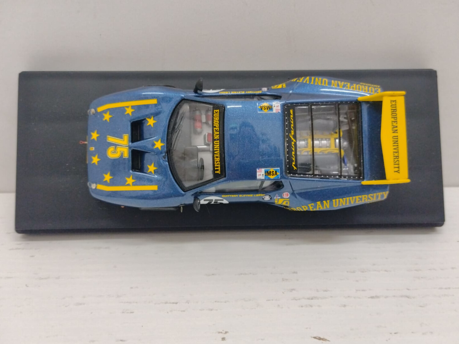 Condizioni buone. NOTA BENE: Manca il gancio di blocco destro del cofano anteriore, per l resto il modellino è in ottimo stato. Completo di basetta originale, senza teca e box in cartoncino come da immagini. Blu Giallo.