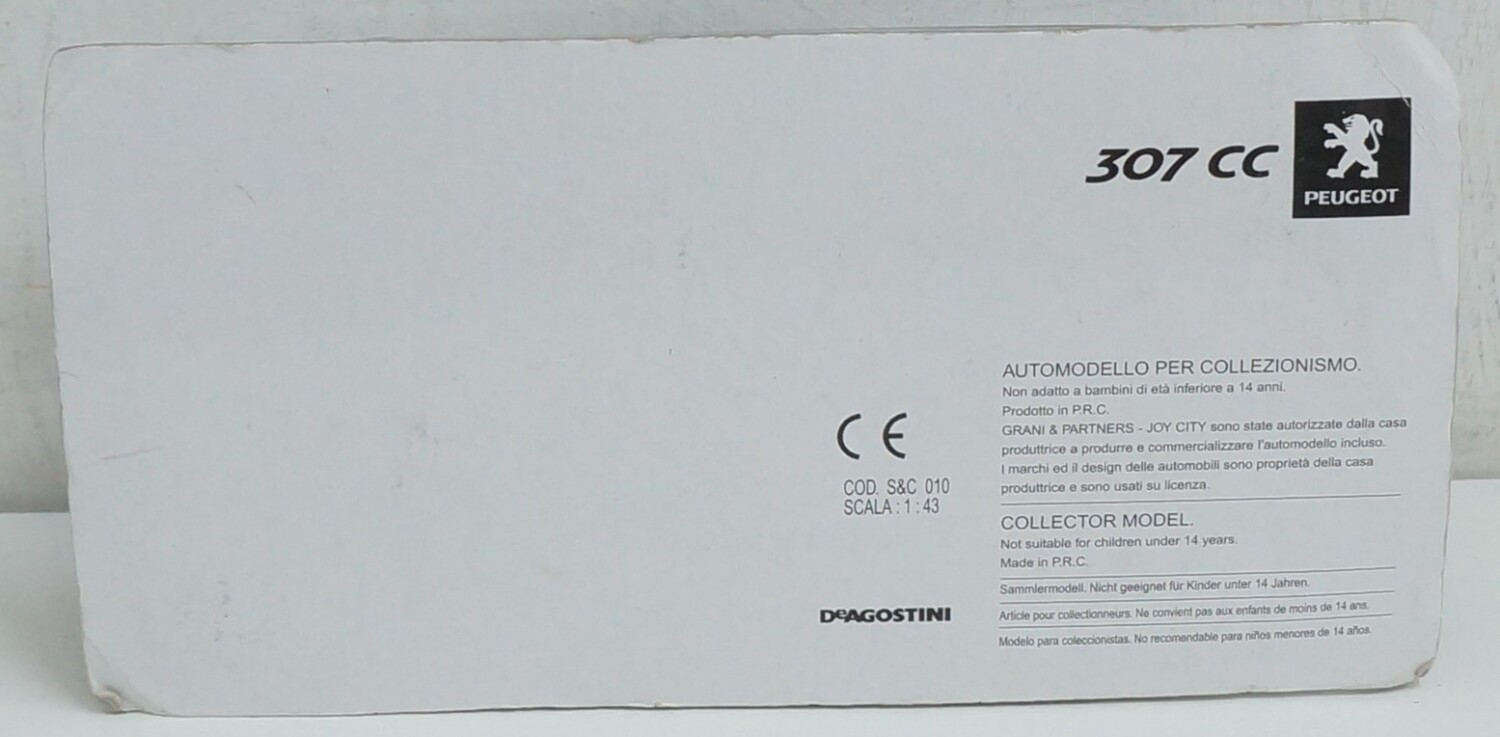 Peugeot 307 CC – Modellino Die Cast Scala 1:43 – De Agostini