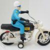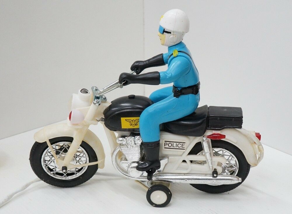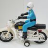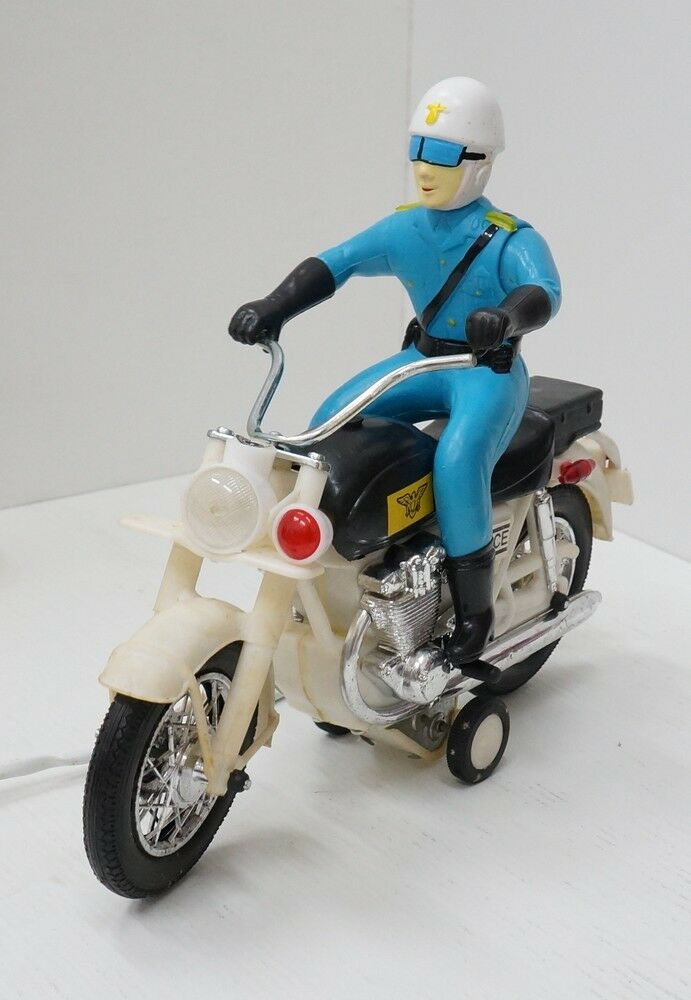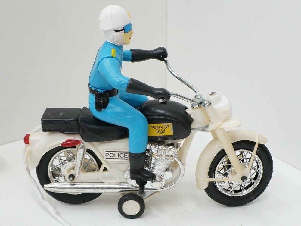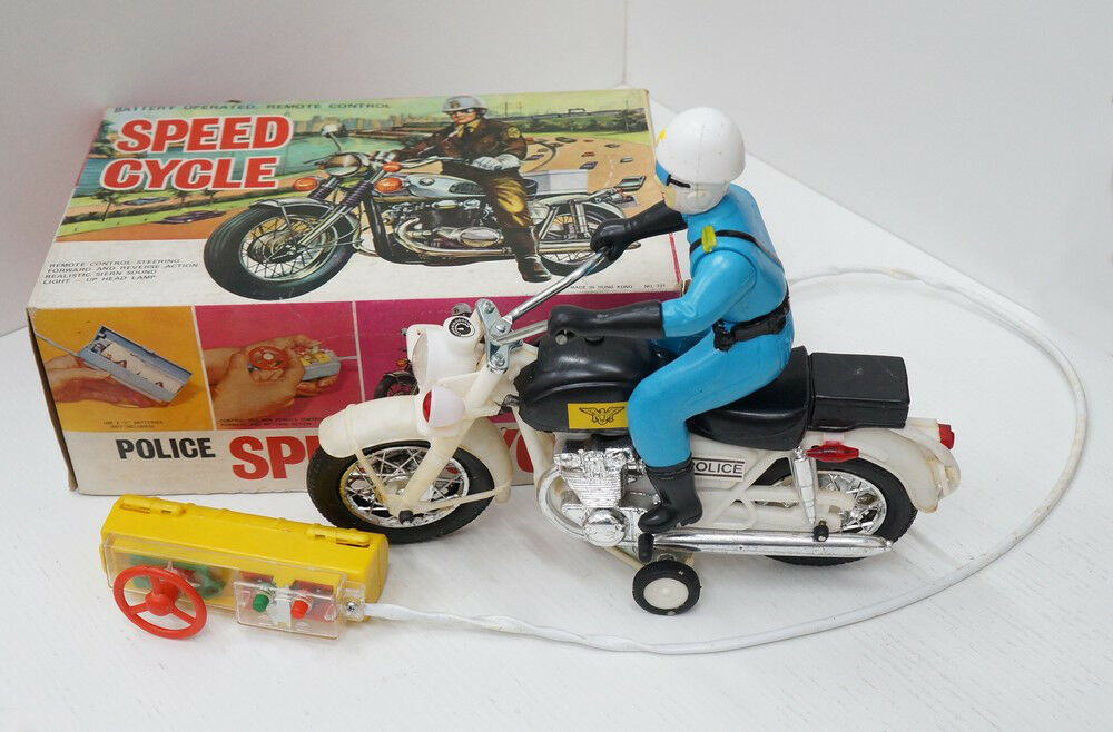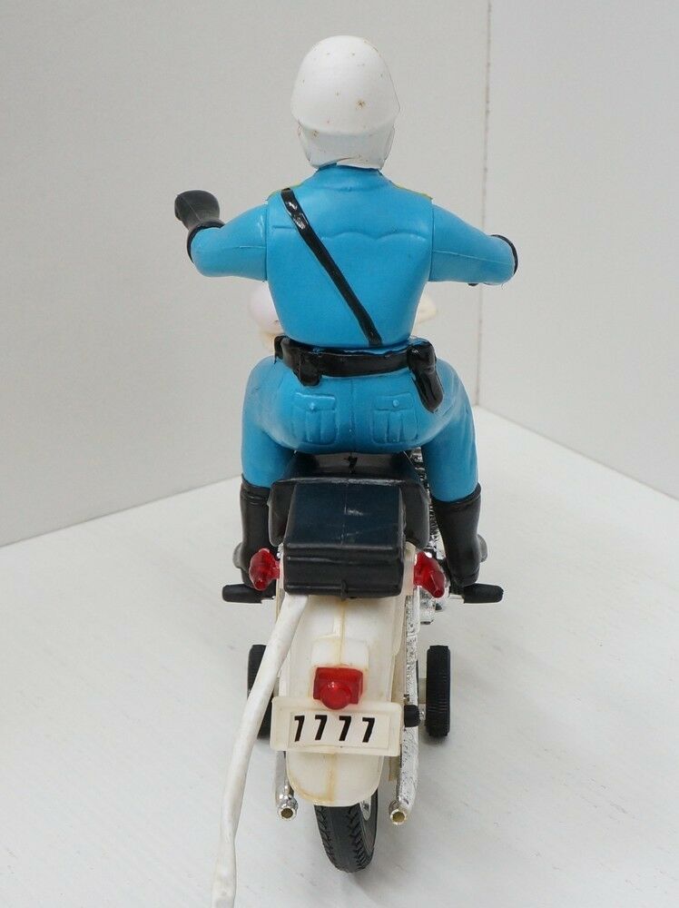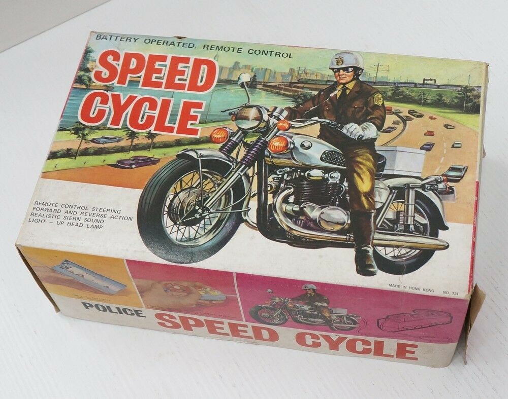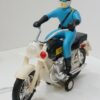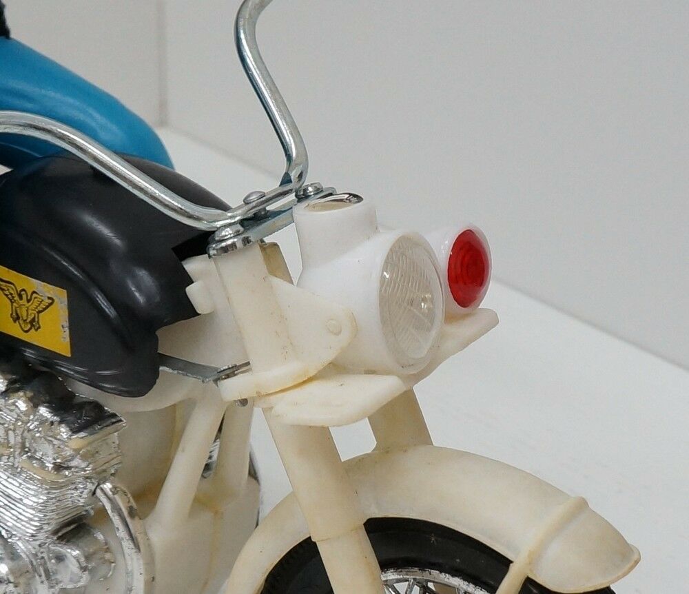 Condizioni Ottime Il faro supplementare anteriore destro è mancante. I meccanismi di marcia avanti e indietro, di sterzata e di luce anteriore sono funzionanti. La sterzata è funzionante ed il modellino sterza verso sinistra ma verso destra non riesce a sterzare. Sterzando verso destra la ruota anteriore si ferma nella posizione di marcia diritta non riuscendo ad andare oltre, è da sistemare-tarare. La luce anteriore è funzionante. Sul telecomando sono presenti il tasto marcia avanti e il tasto marcia indietro e il comando del manubrio per sterzare. Il box ha qualche piccolo strappetto.