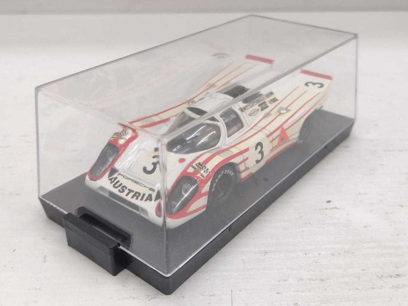 | Condizioni buone. Adesivi con qualche piccolo pezzettino mancante. Completo di basetta originale, teca e box in cartoncino come da immagini. Bianco rosso |