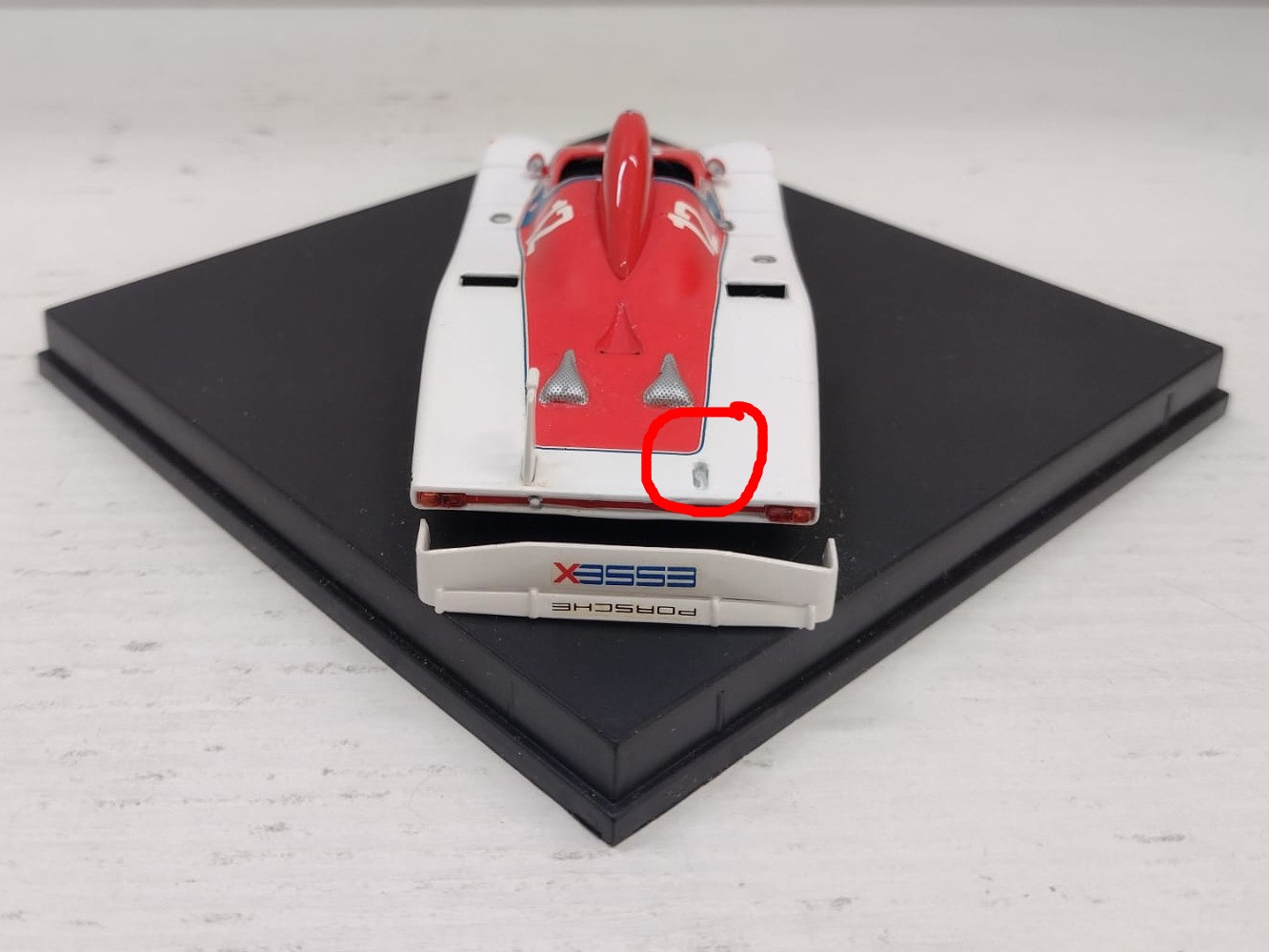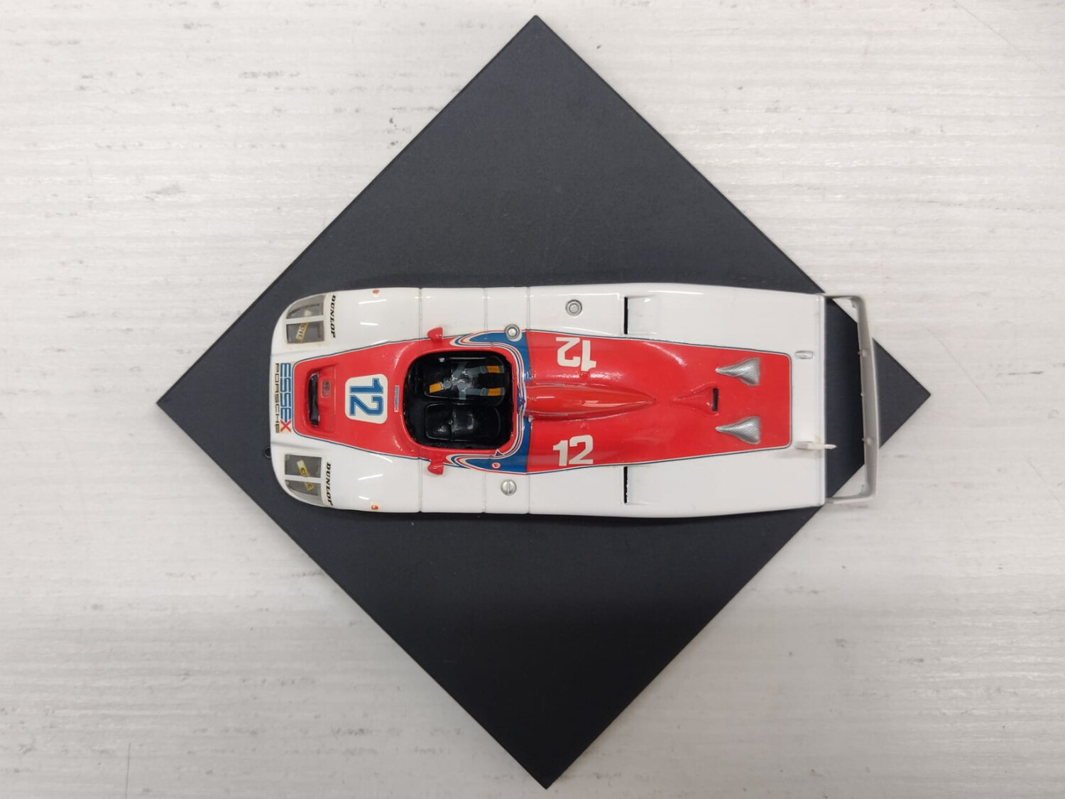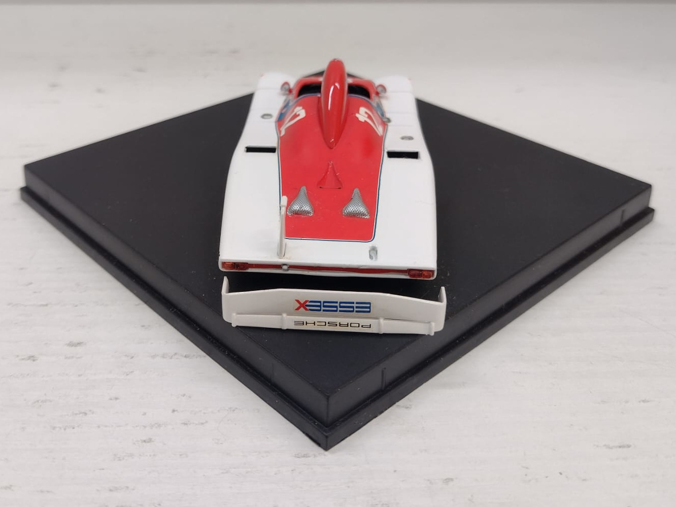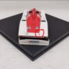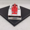 | Condizioni accettabili. L’alettone posteriore è staccato e uno degli attacchi è mancante. Completo di basetta originale, senza teca e box in cartoncino come da immagini. Bianco Rosso. |