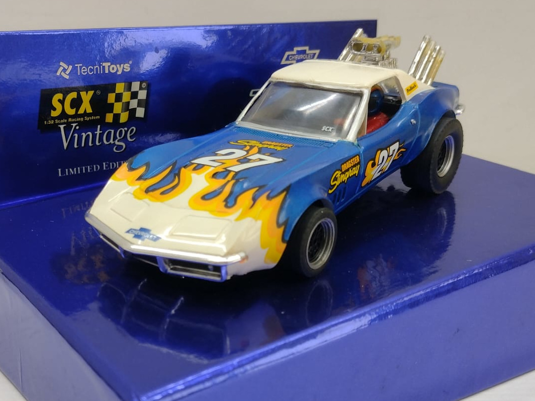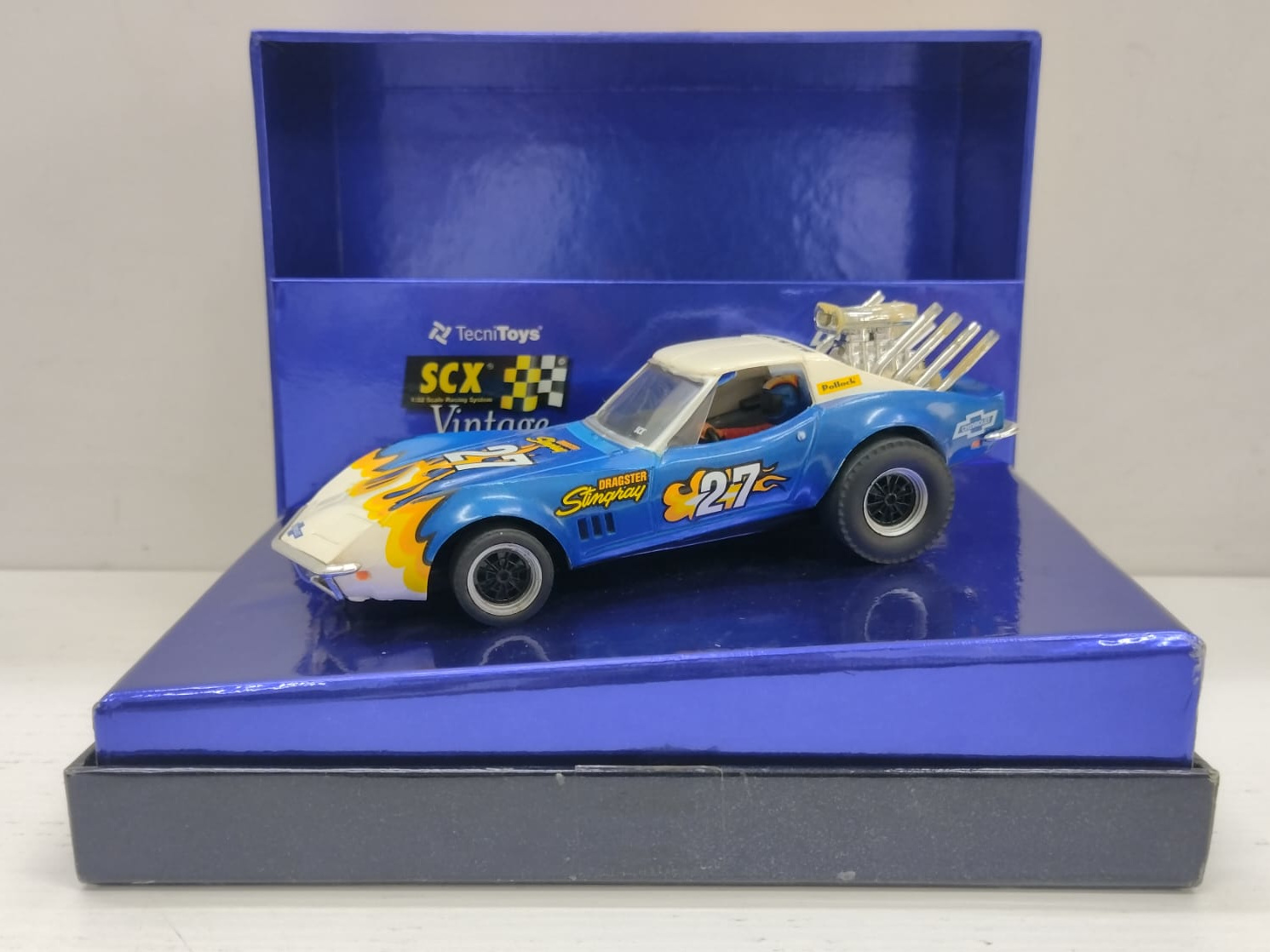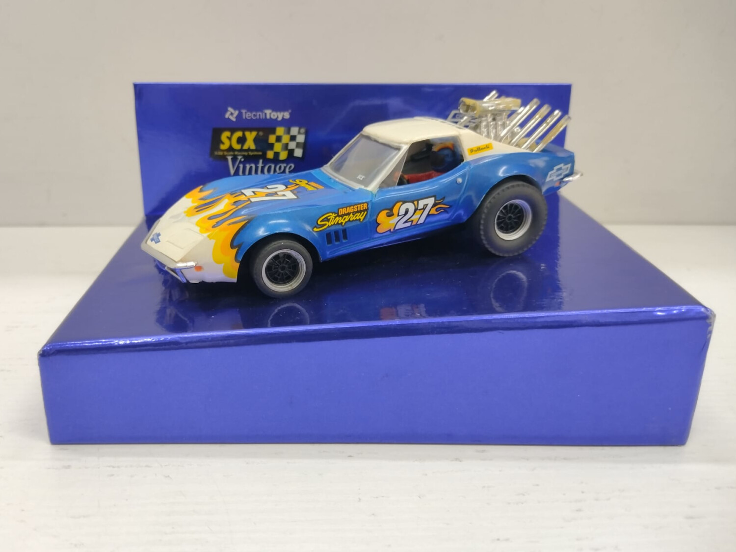Slot Car Corvette Dragster Scalextric Strinray SCX 61180 1:32 #27 Vintage Modellino Model car Blu Bianco Limited Edition