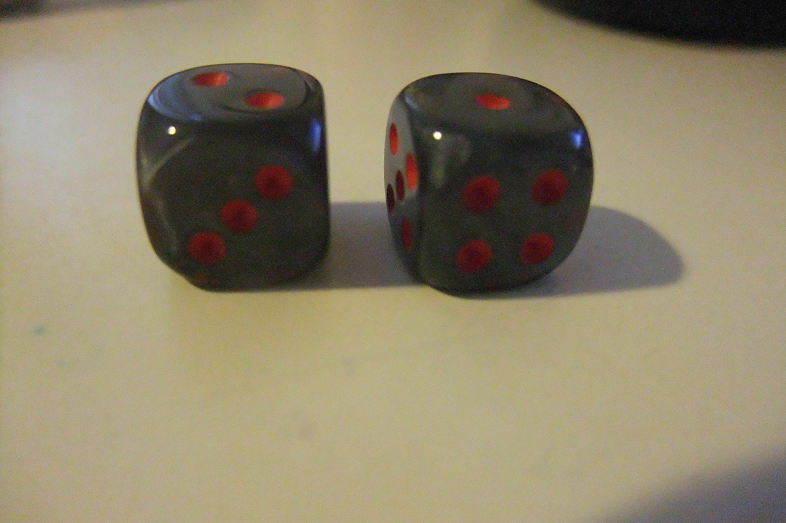SET 2 DADI a 6 facce GRIGI con puntini rossi per WARHAMMER 10 mm (Cod. D13)