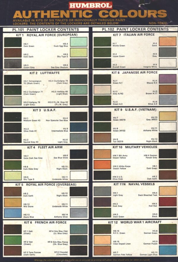 | Volantino della gamma Authentic Colours di Humbrol. Presenta una leggera usura ai bordi, strappetto sul bordo superiore. |