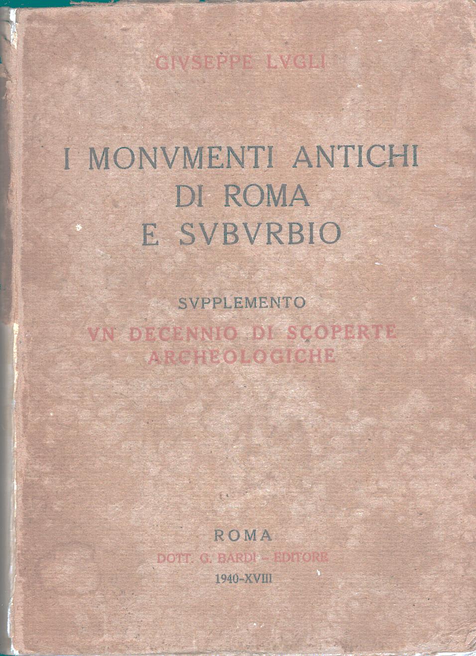 | Titolo: | I monumenti antichi di Roma e Suburbio di Giuseppe Lugli ed. Bardi (1940) |