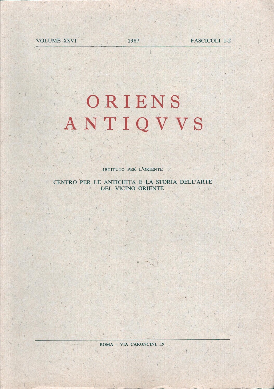 | Titolo: | Oriens Antiquus Anno 1987 volume XXVI – fascicoli 1-2 di Istituto per l’Oriente ed. La Roccia |