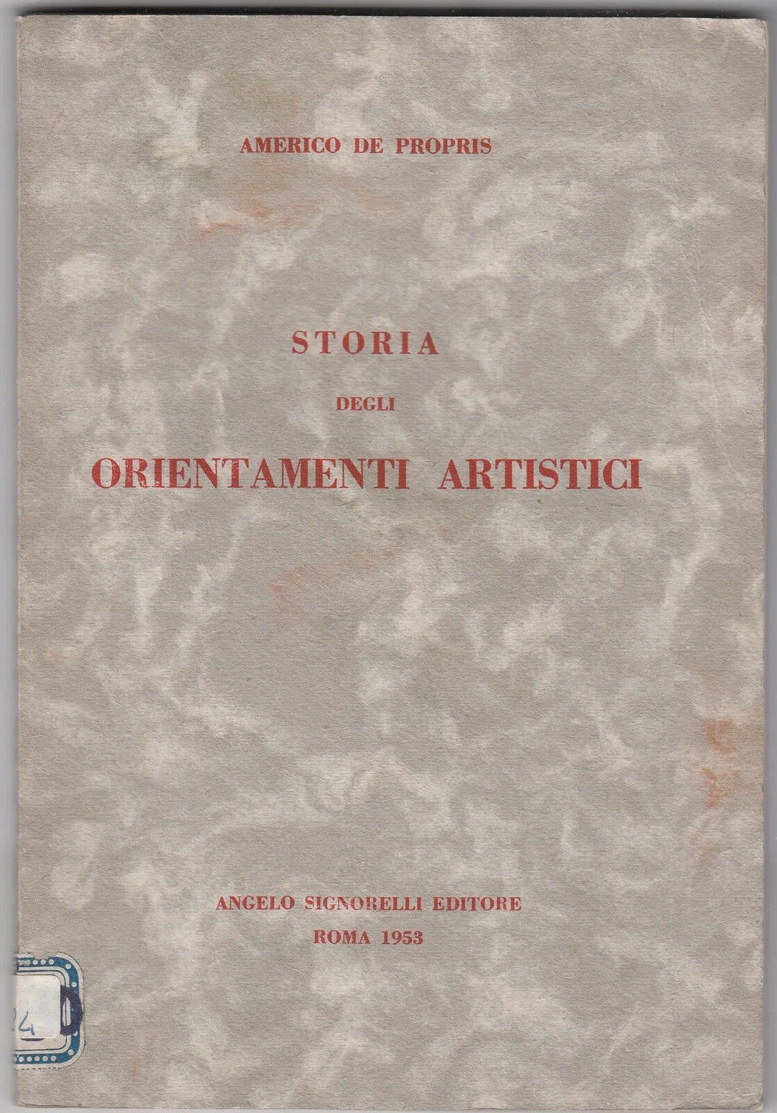 STORIA DEGLI ORIENTAMENTI ARTISTICI di Americo De Propris 1953 Signorelli