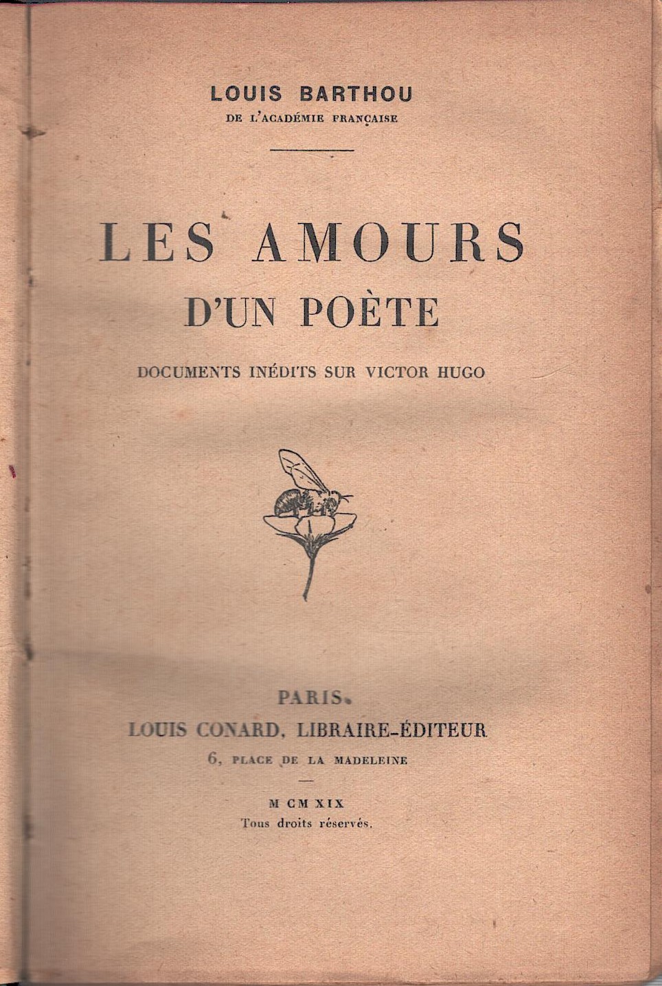 | Titolo: | Les amours d’un poete (Victor Hugo) di Barthou, Louis – In Francese ed. Conard (1919) |