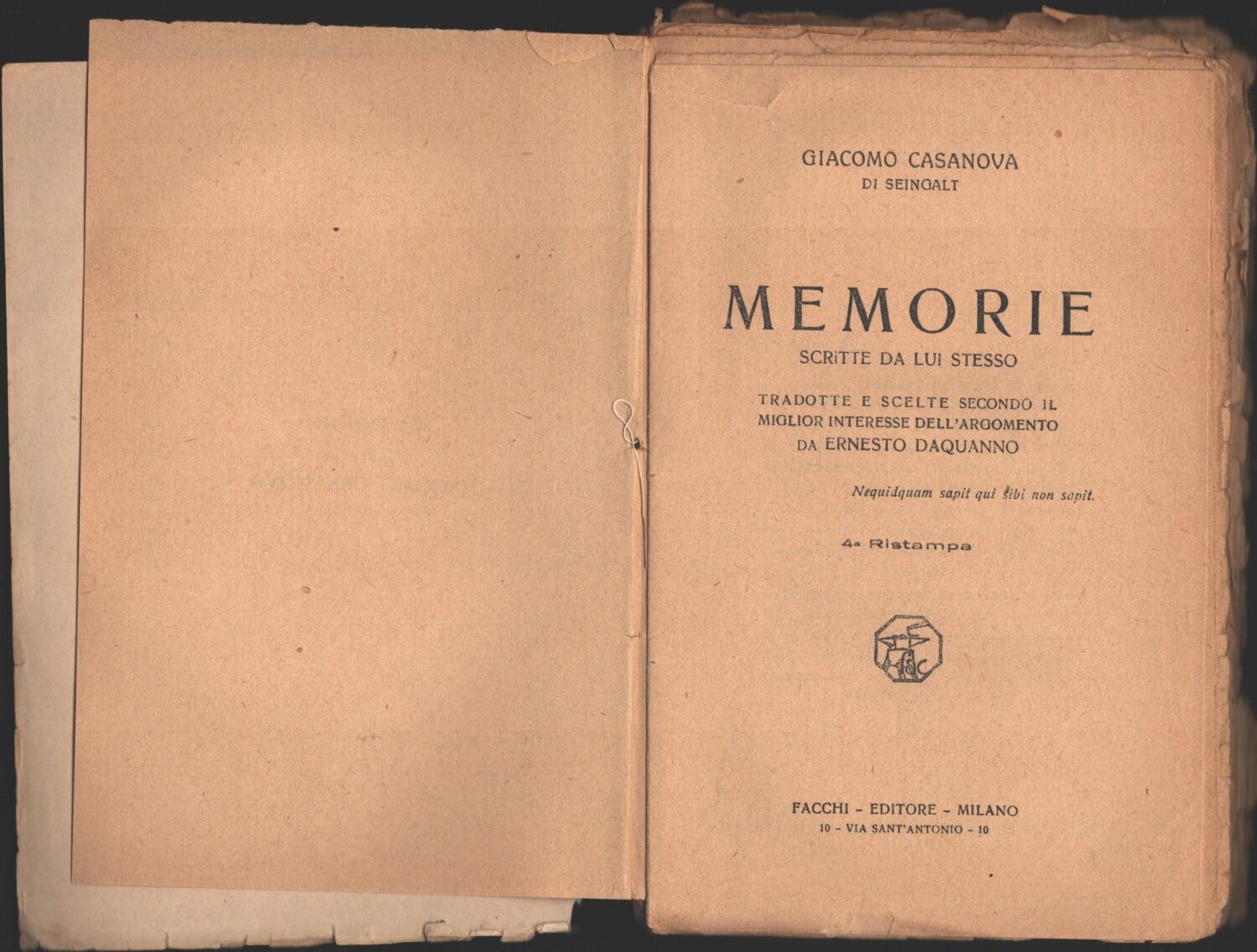 Memorie di Giacomo Casanova – Scritte da lui stesso – Tradotte e scelte da Ernesto Daquanno ed. Facchi (1914)