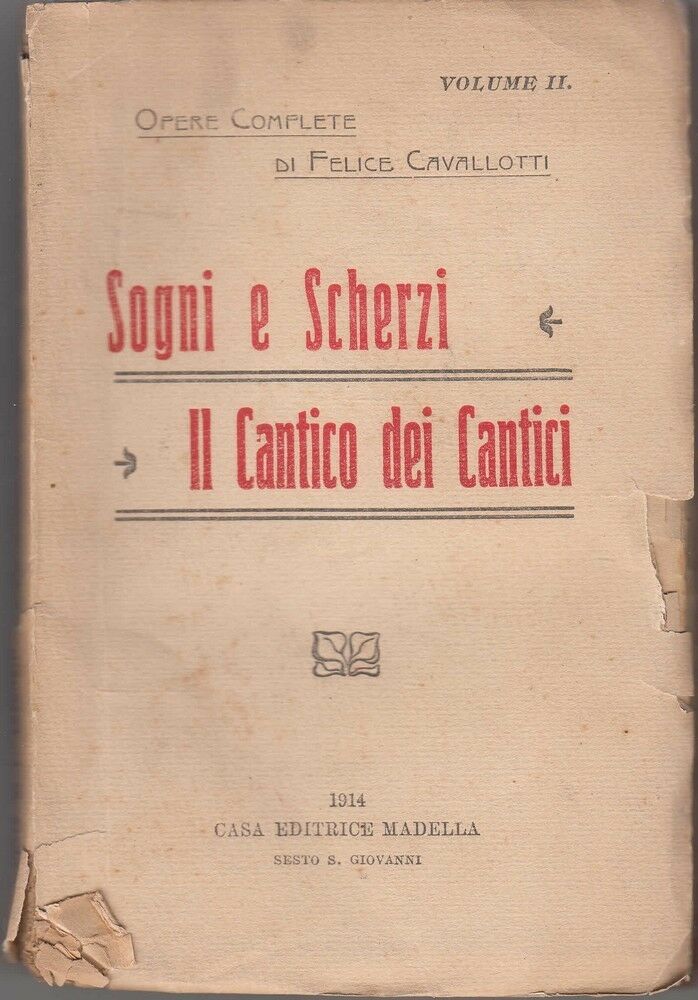SOGNI E SCHERZI – IL CANTICO DEI CANTICI Vol. II Opere complete di F. Cavallotti