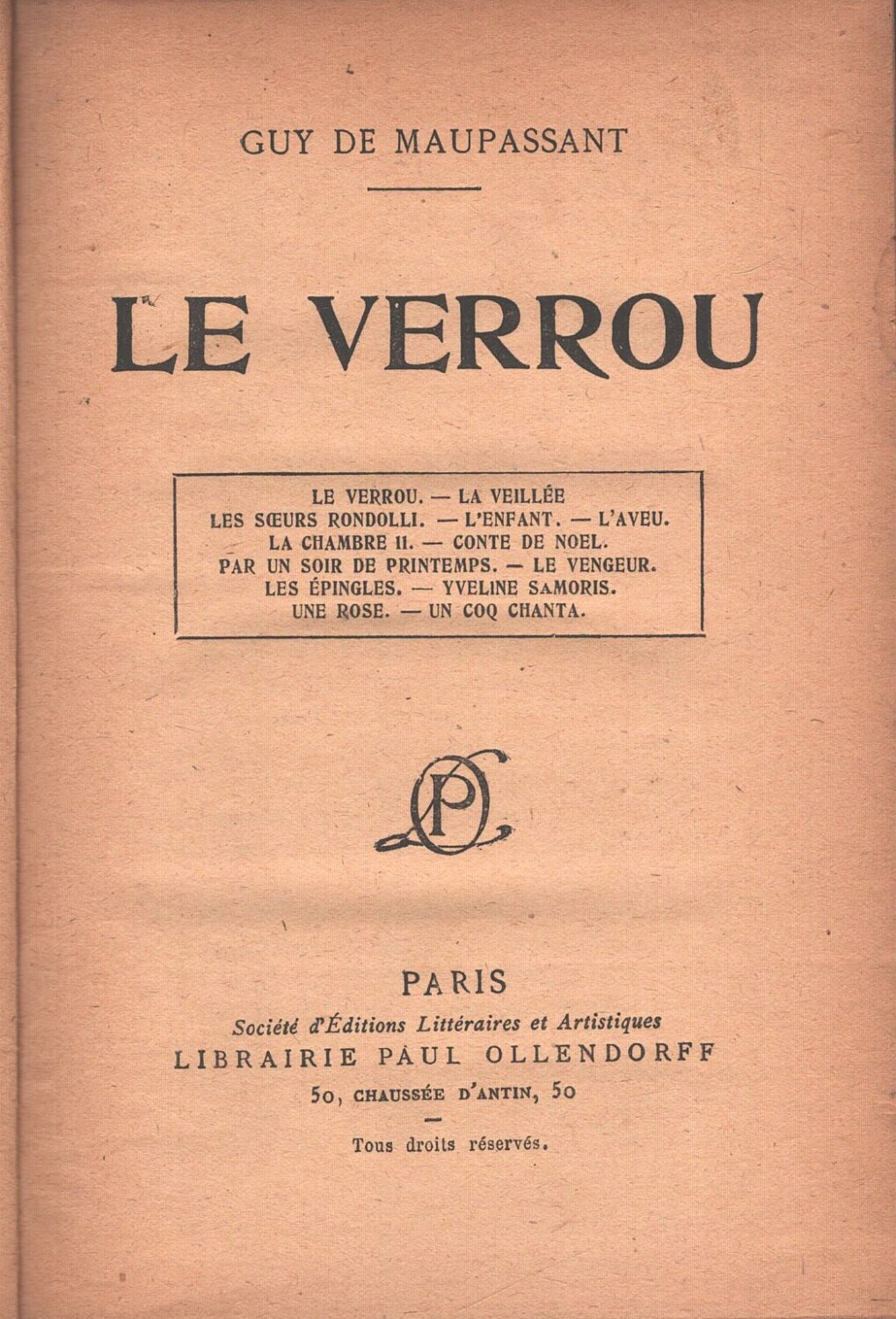 | Titolo: | Le Verrou di Guy De Maupassant – In Francese ed. Librairie Paul Ollendorff |