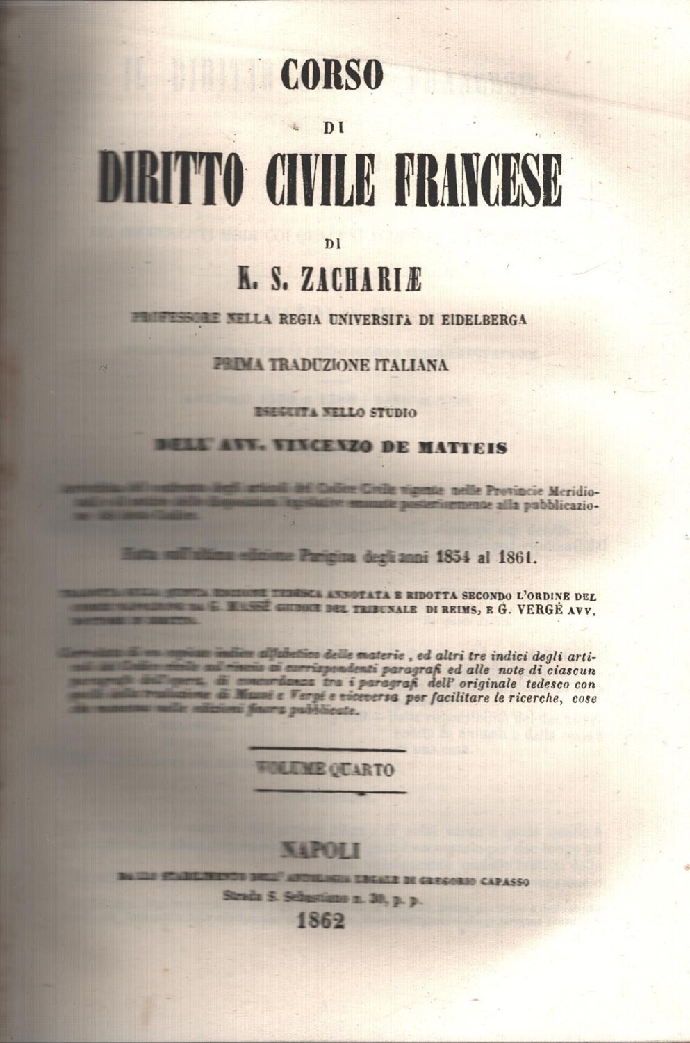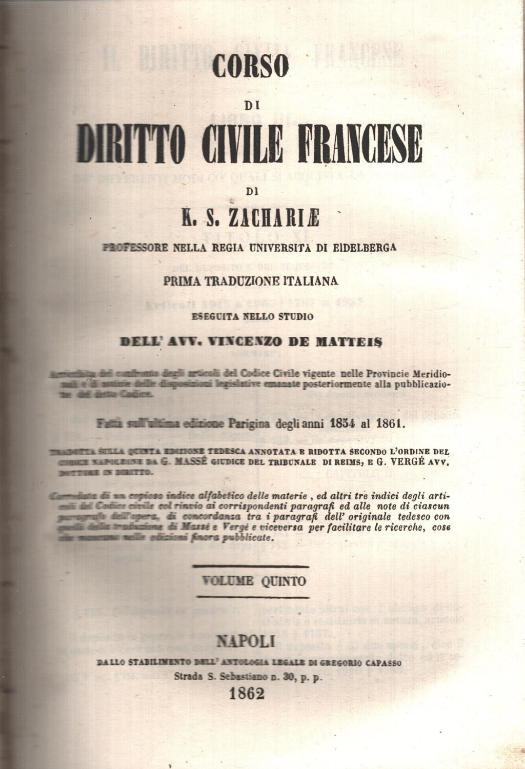 | Titolo: | Corso di Diritto Civile Francese (vol. 3, 4, 5) di Zachariae ed. Capasso (Prima traduzione Italiana vol. 3,4,5 in unico tomo) |
