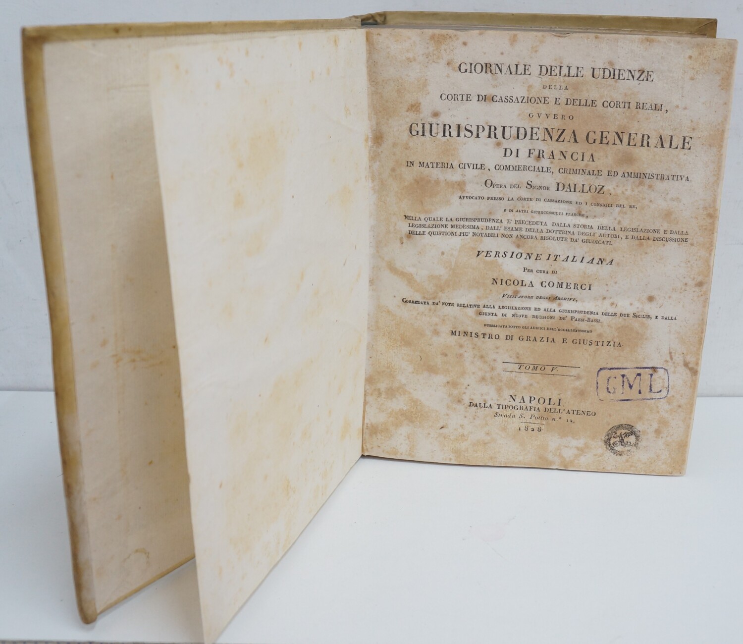 | Titolo: | Giurisprudenza Generale di Francia Tomo V: D del Signor Dalloz ed. 1828 Tipografia dell’Ateneo |