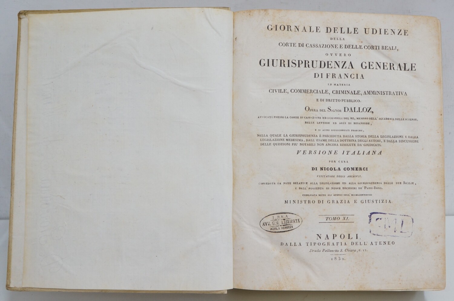 | Titolo: | Giurisprudenza Generale di Francia Tomo XI: S del Signor Dalloz ed. 1832 Tipografia dell’Ateneo |