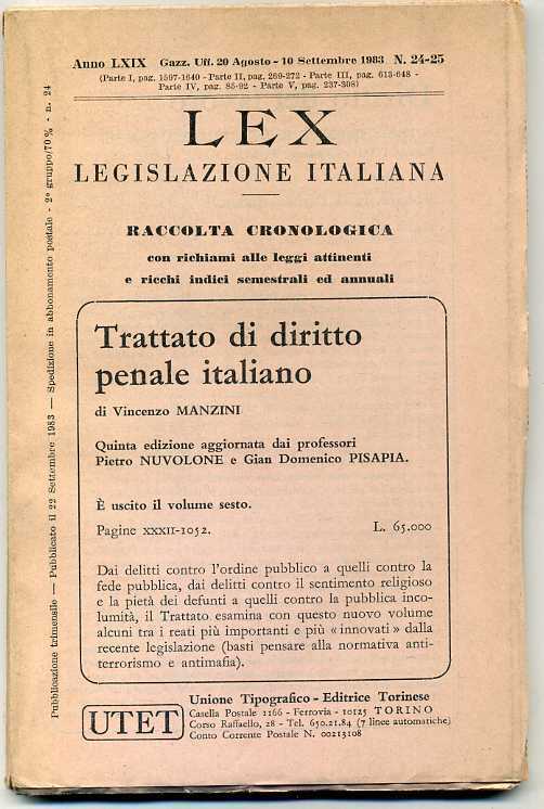 LEX LEGISLAZIONE ITALIANA Raccolta Cronologica Anno LXIX 1983 n. 24-25 UTET