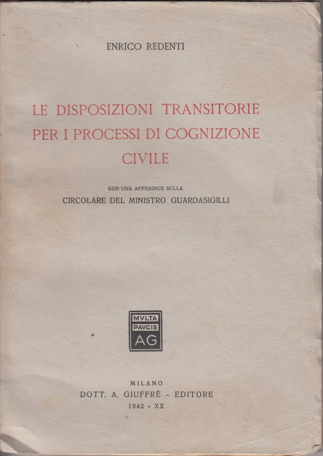 | Titolo: | Le disposizioni transitorie per i processi di cognizione civile di Enrico Redenti ed. Giuffrè 1942 |
