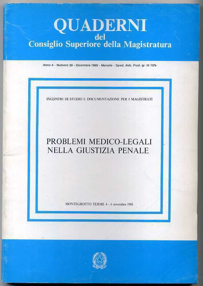 QUADERNI CSM Problemi medico-legali nella giustizia penale N.30 Dicembre 1989