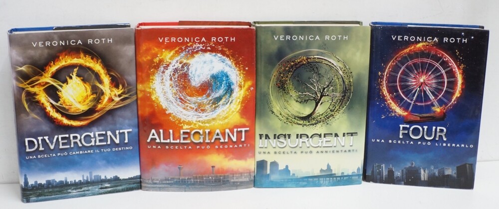La saga comprende: – Divergent – Insurgent – Alegiant – Four il prequel di Divergent. |
