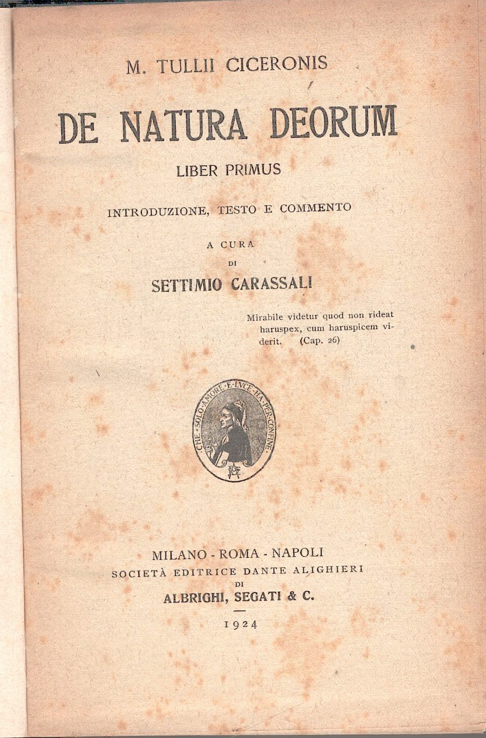 | Titolo: | De Natura Deorum Liber primus, secundus tertius di M. Tullii Ciceronis ed. Albrighi Segati – Signorelli |