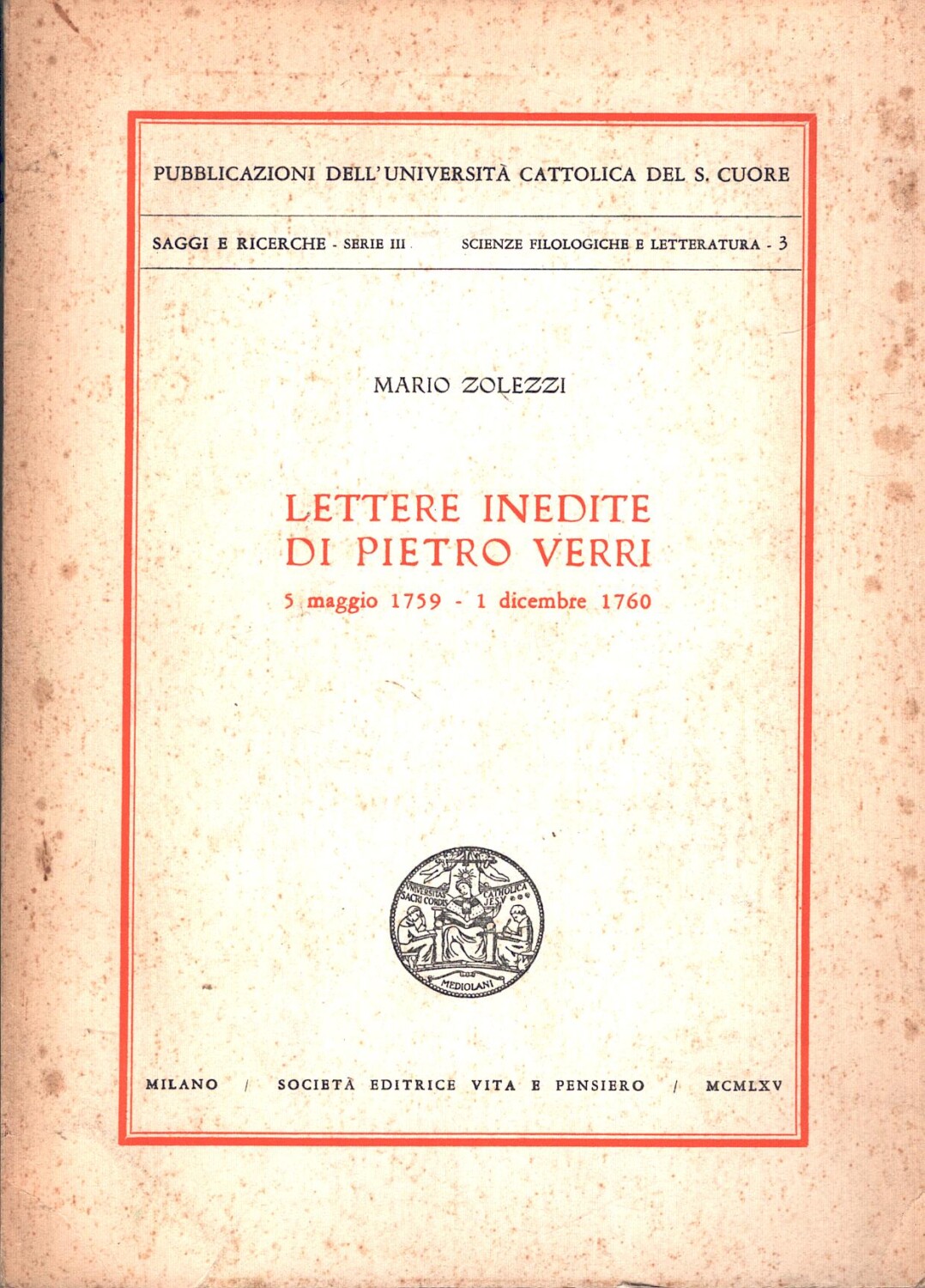 | Titolo: | Lettere inedite di Pietro Verri 5 maggio 1759 – 1 dicembre 1760 di Zolezzi Mario ed. Società Editrice Vita e Pensiero |