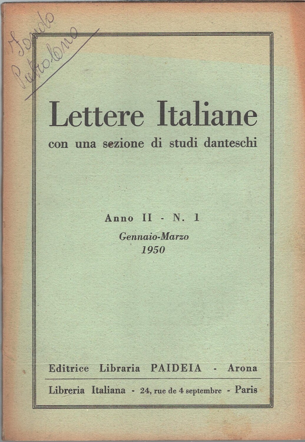 | Titolo: | Lettere Italiane con una sezione di studi danteschi Anno II n. 1 – Gennaio Marzo 1950 ed. Paideia |
