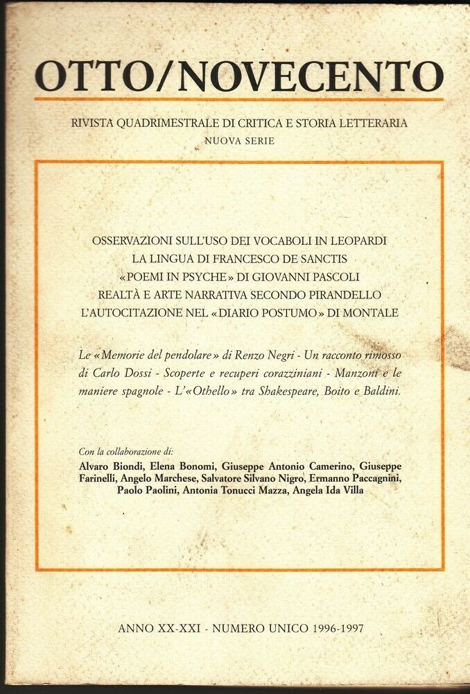 OTTO/NOVECENTO Rivista Quadrimestrale Anno XX-XXI Numero Unico 1996-1997