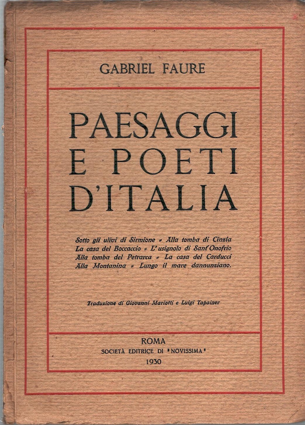 | Titolo: | Paesaggi e poeti d’Italia di Gabriel Faure ed. Società Editrice di “Novissima” (1930) |