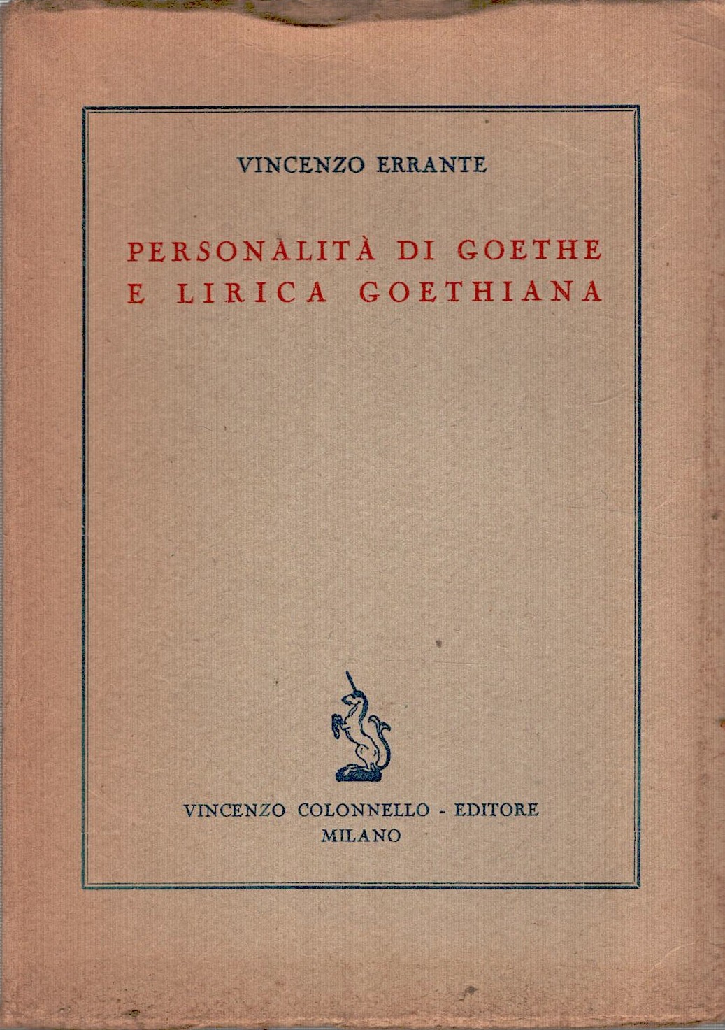 | Titolo: | Personalità di Goethe e lirica Goethiana di Vincenzo Errante ed. Colonnello (1935) |