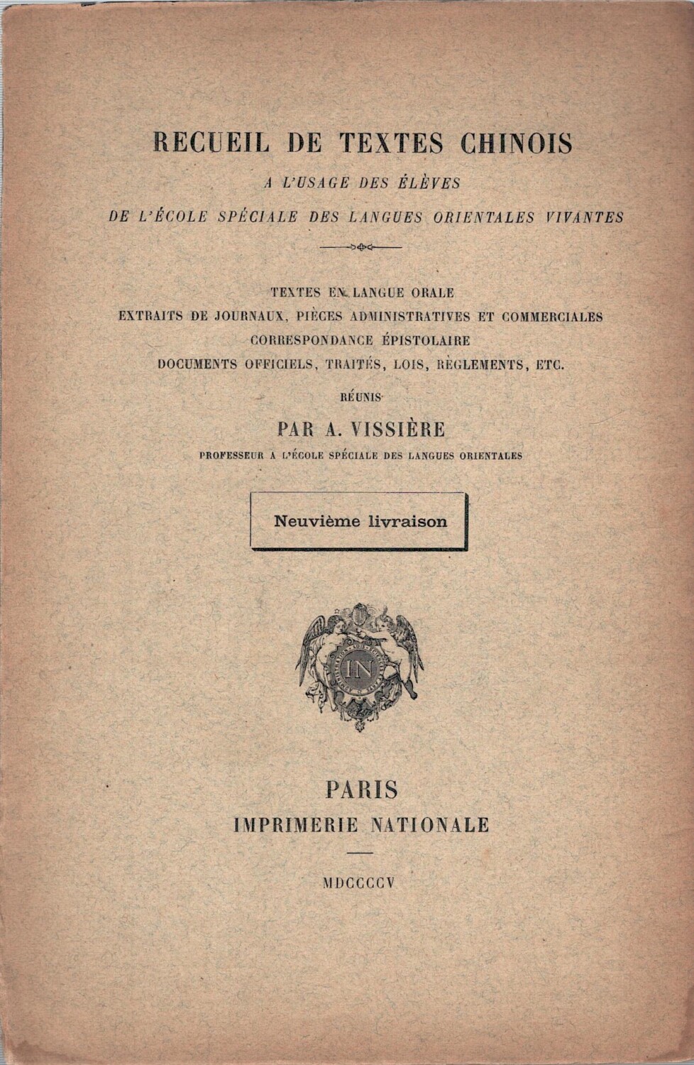 Recueil de textes chinois a l’usage des eleves – Neuvieme livraison ed. Paris Imprimerie Nationale (1905)