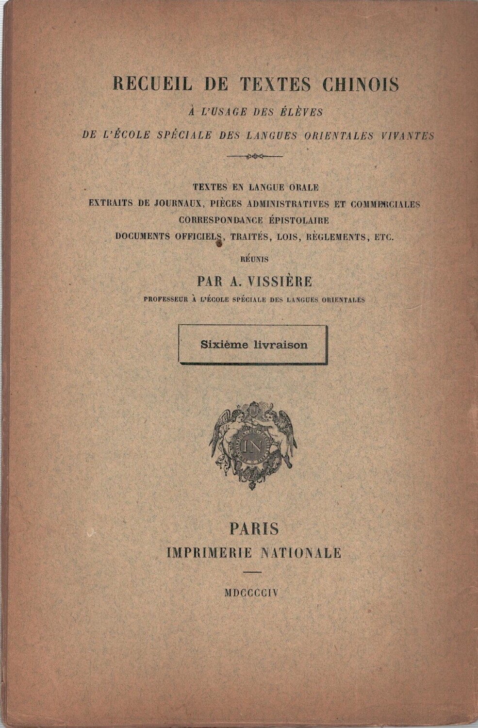 | Titolo: | Recueil de textes chinois a l’usage des eleves – Sixieme livraison ed. Paris Imprimerie Nationale (1904) |