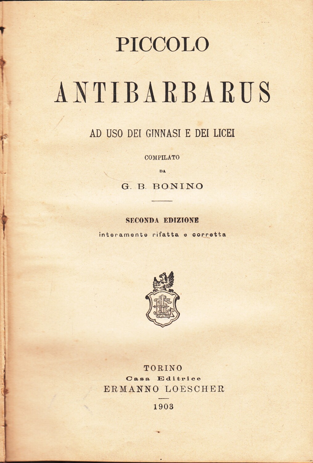 Piccolo Antibarbarus ad uso dei Ginnasi e dei Licei di G. B. Bonino ed. Loescher 1903
