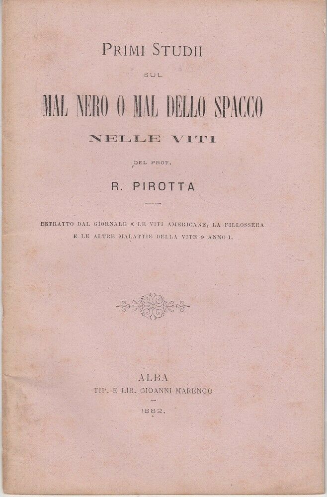 PRIMI STUDI SUL MAL NERO O MAL DELLO SPACCO NELLE VITI di Pirotta ed. 1882 Alba