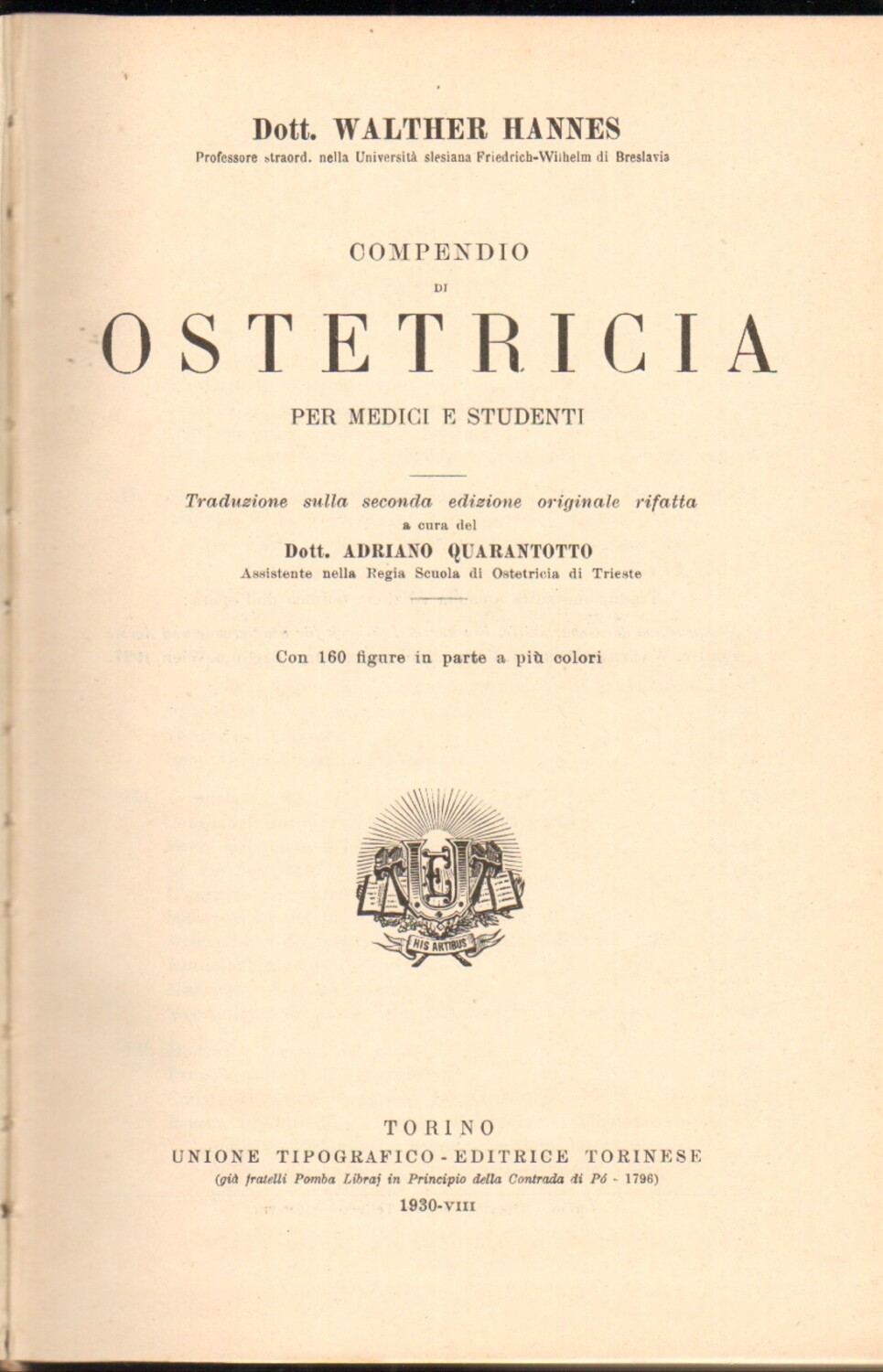 | Titolo: | Compendio di ostetricia per medici e studenti di Dott. WALTHER HANNES ed. UTET |