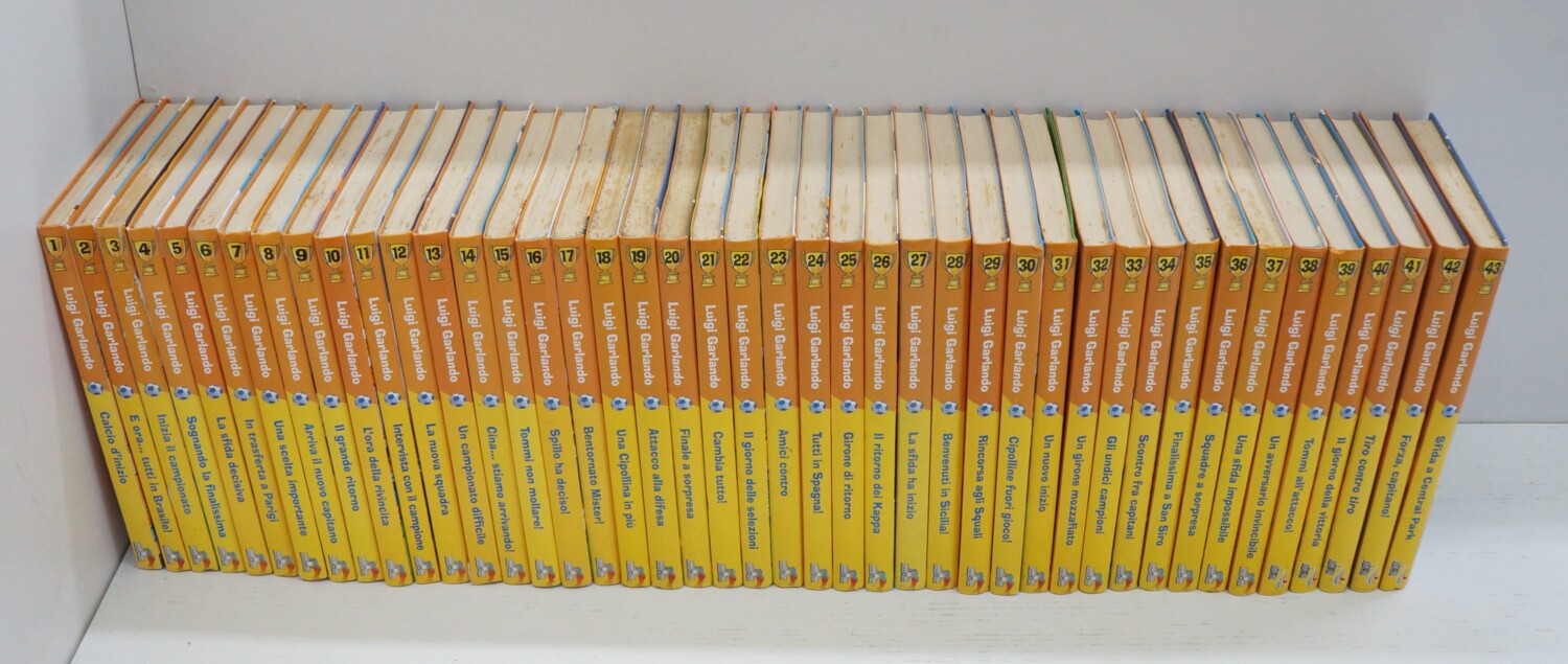 | NOTA BENE: Saga NON COMPLETA, comprende solamente i volumi dal n. 1 al n. 43. Tutti i volumi sono in buono stato e presentano una leggera usura ai bordi della copertina, gli angoli un po’ schiacciati e presentano macchioline di ingiallimento sul bordo esterno delle pagine. Una decina di volumi hanno una scritta di penna alla prima pagina. Il volume n. 40 ha assorbito umidita’, le pagine non sono comunque attaccate tra loro e sono perfettamente leggibili. Gli adesivi inclusi dal volume n. 33 al n. 35 non sono presenti. Le interviste e la rubrica “appuntamento con” inclusi dal n. 36 al 43 sono tutte incluse (Buffon, Pirlo, El Shaarawy, Montolivo, Marchisio, Simone Zaza, Carlo Tevez, Fernando Torres. |