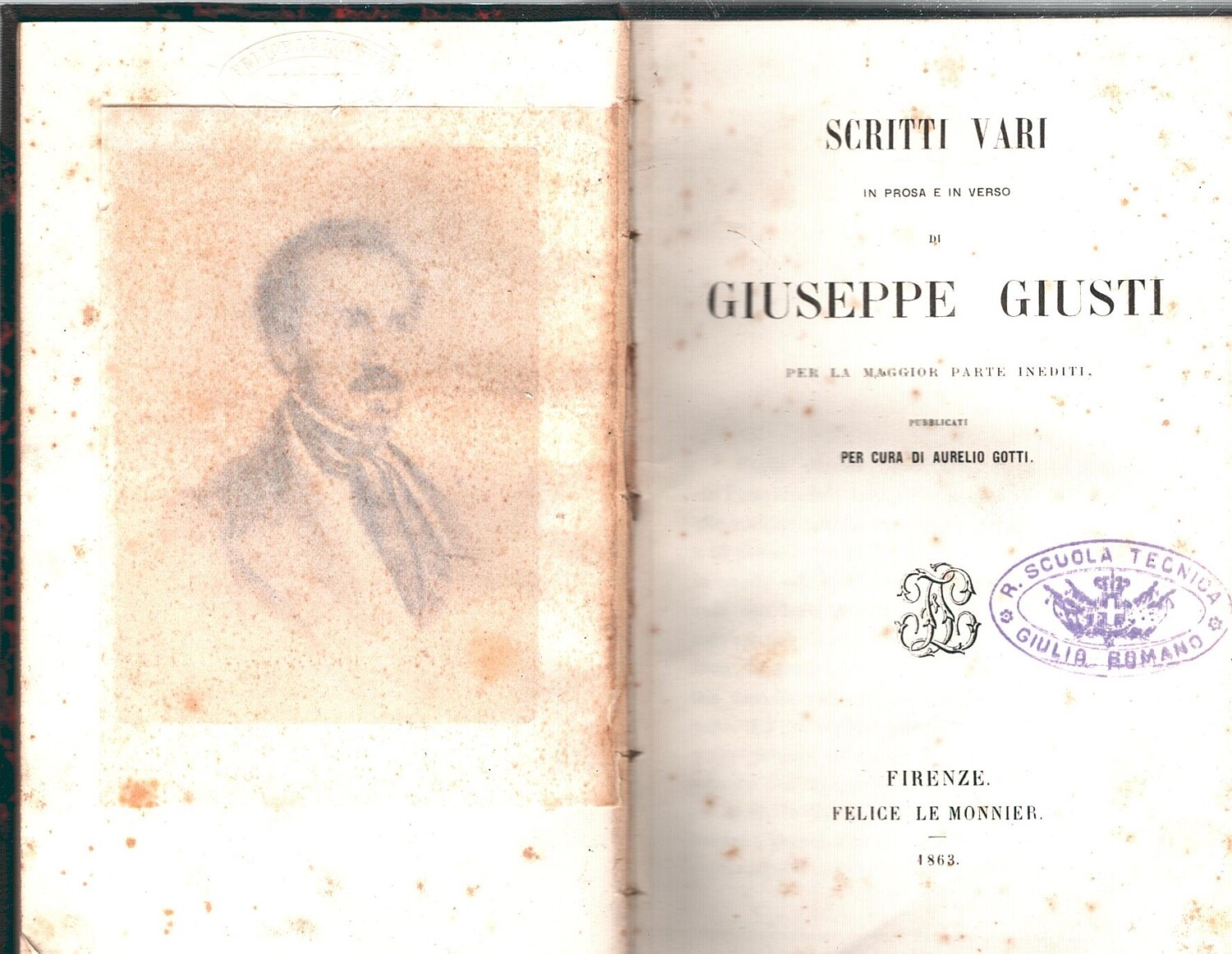 | Titolo: | Scritti vari in prosa e in versi di Giuseppe Giusti a cura di Aurelio Gotti ed. Le Monnier (1863) |